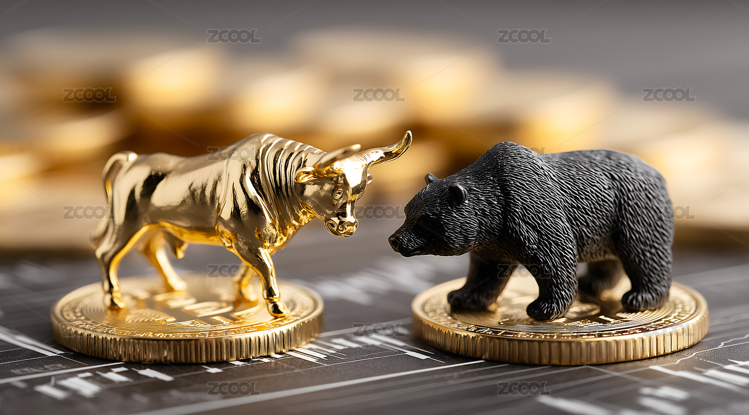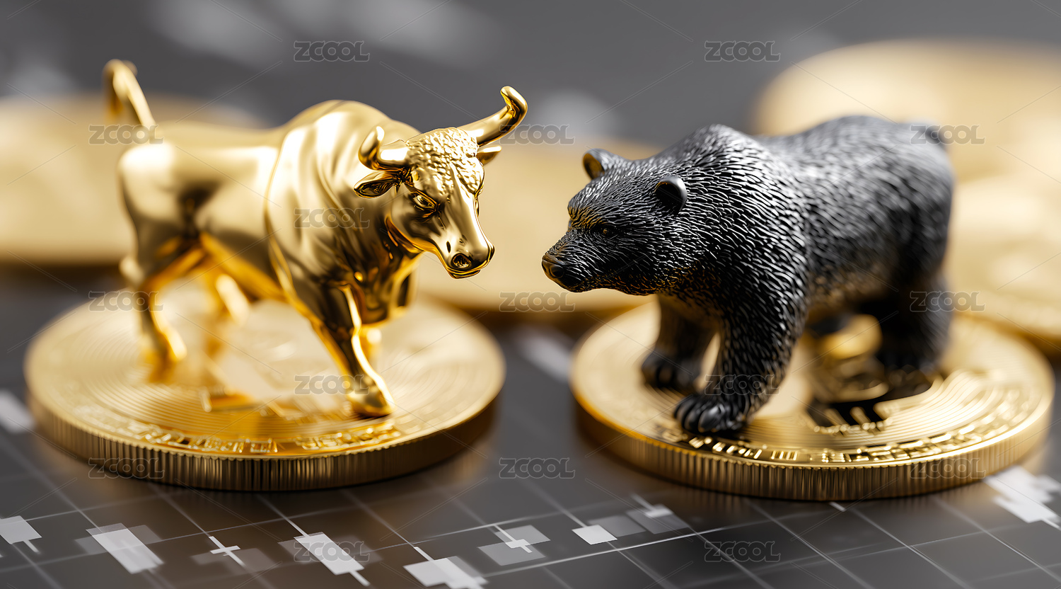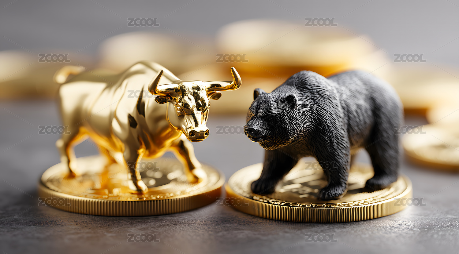 站在金币上的熊与牛,市场竞争,牛市与熊市