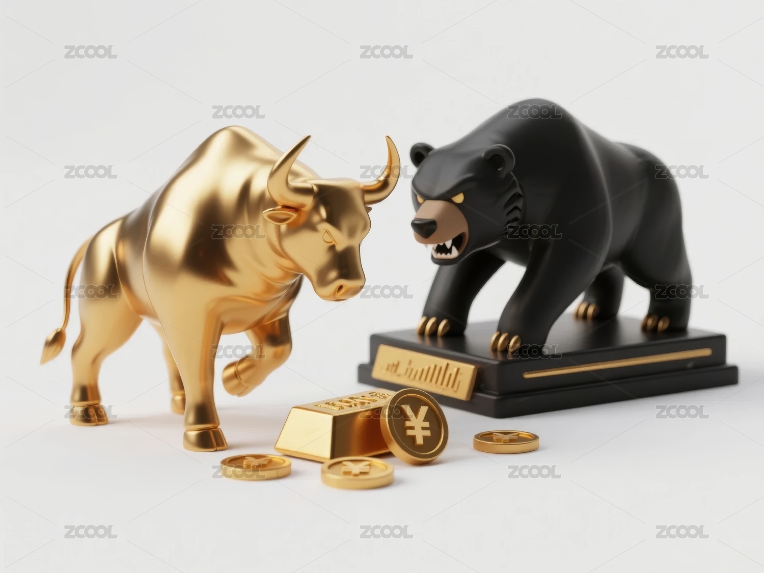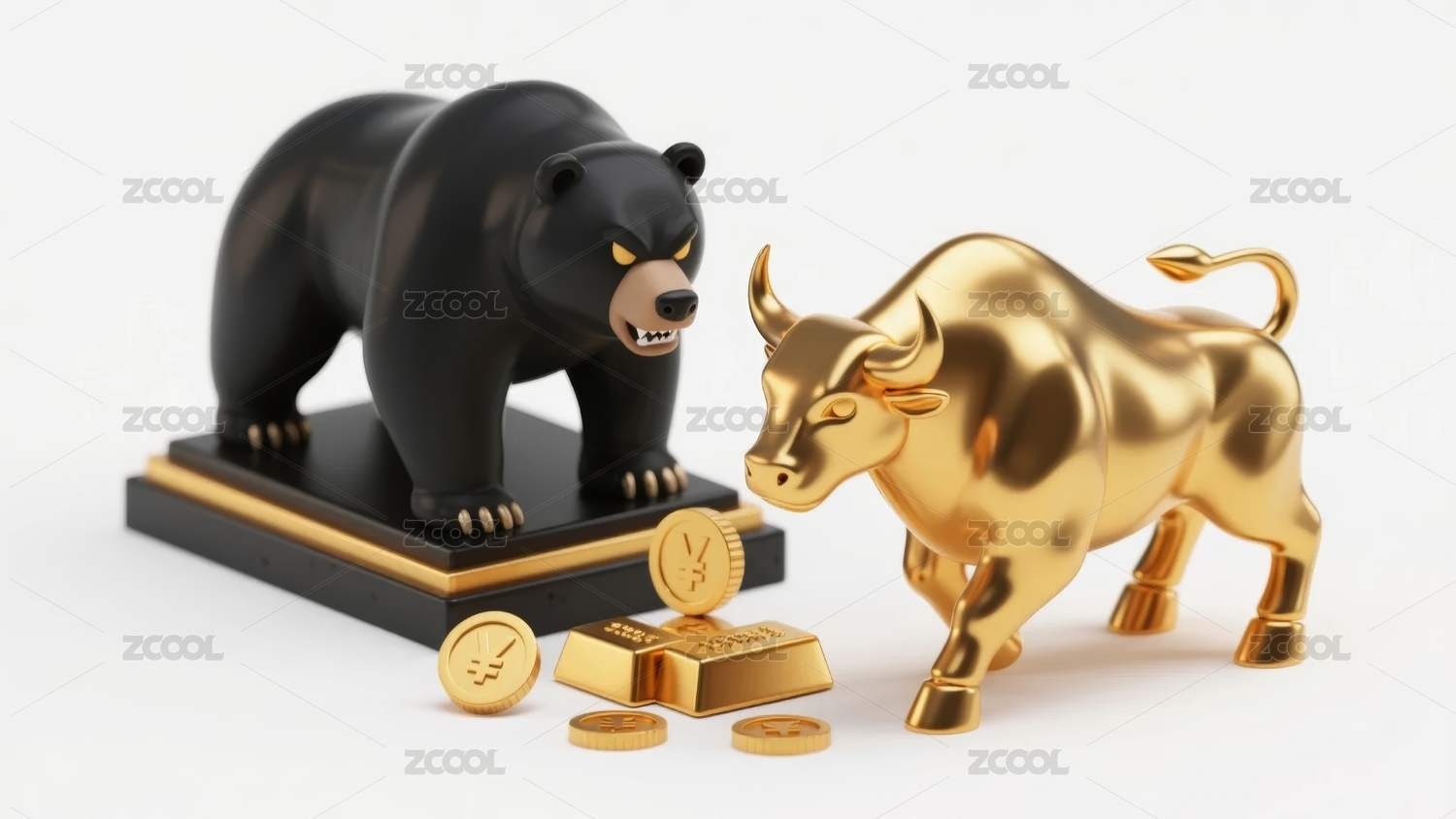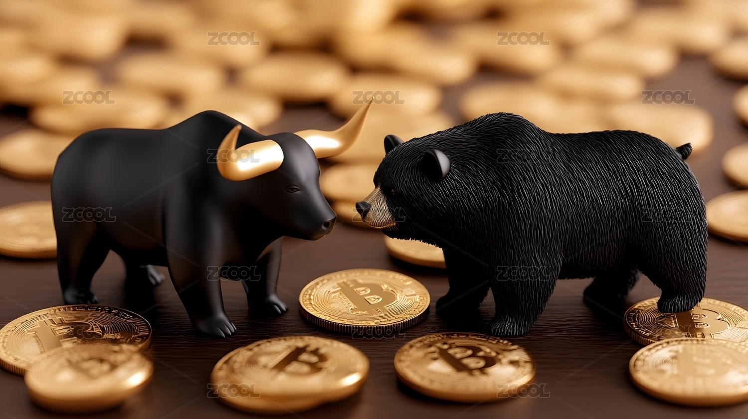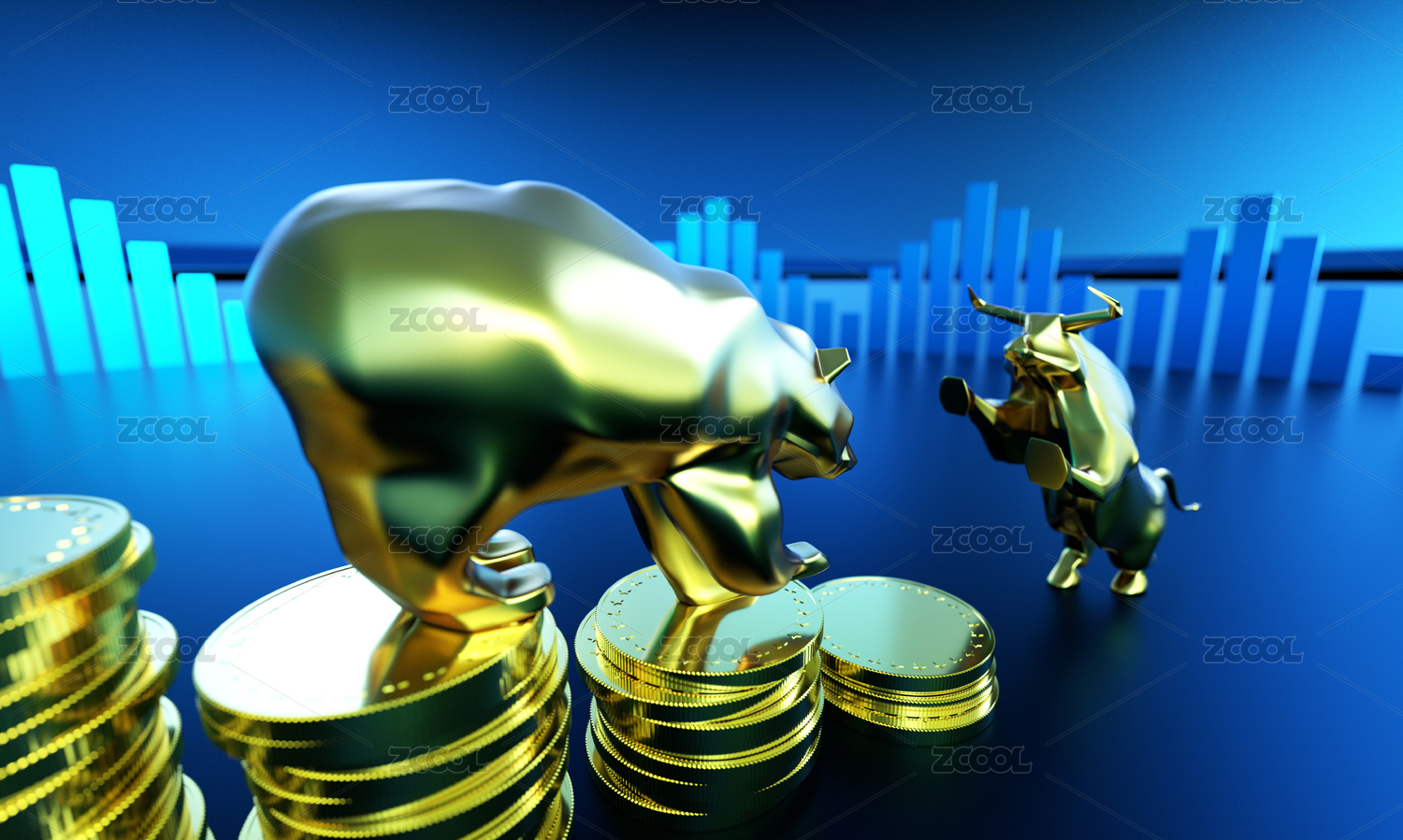 站在金币上的熊与牛,市场竞争,牛市与熊市