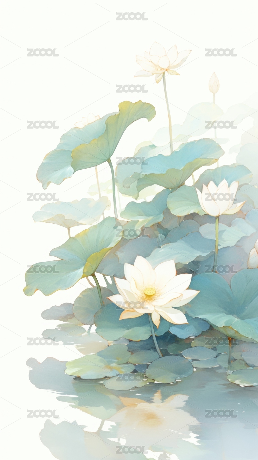 水彩写意莲花荷叶清雅意境
