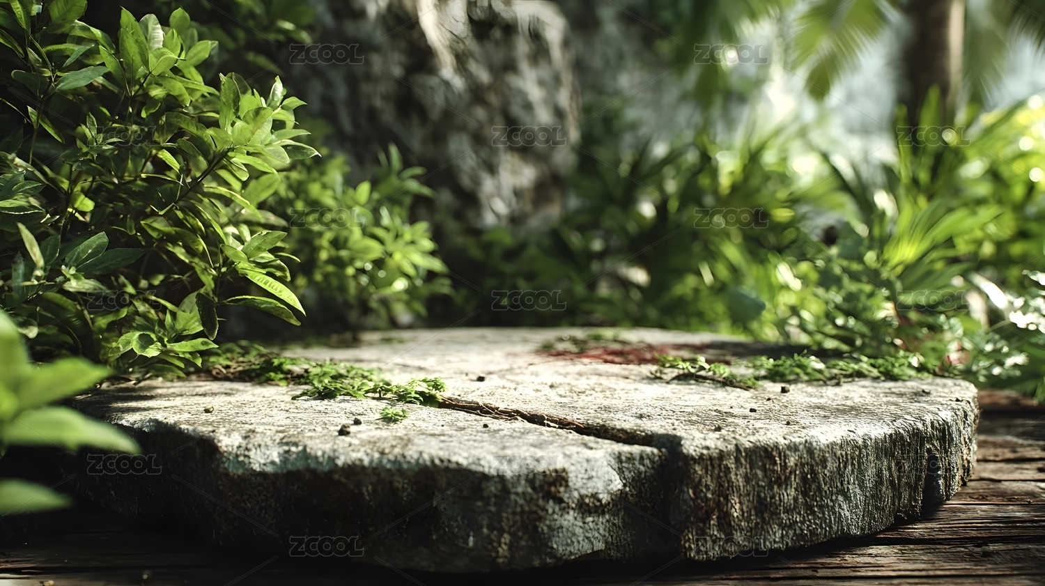 阳光,自然,神秘,石台,绿叶,静谧,幽静,藤蔓,古木,森森