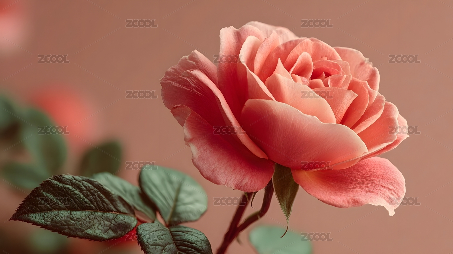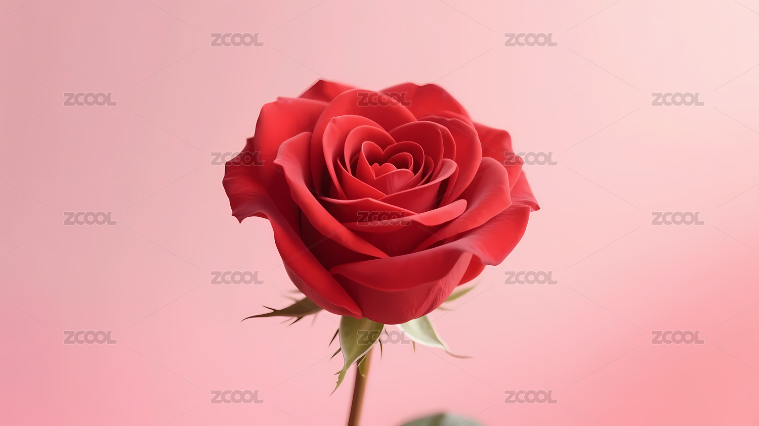 桌子上的花瓶里有一朵粉红色的玫瑰高清图片