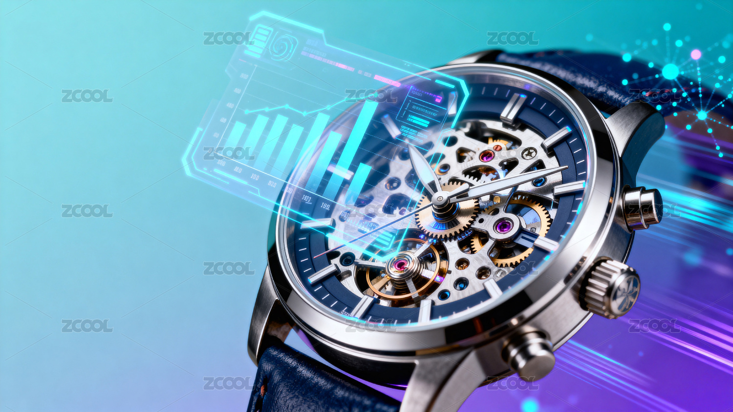 科技感机械手表与数据图表