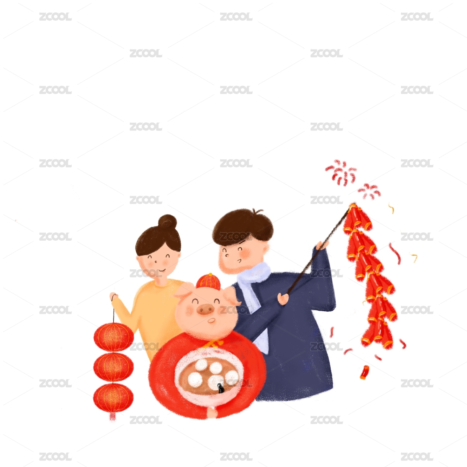 新春龙年过年人物传统喜庆矢量插画素材背景