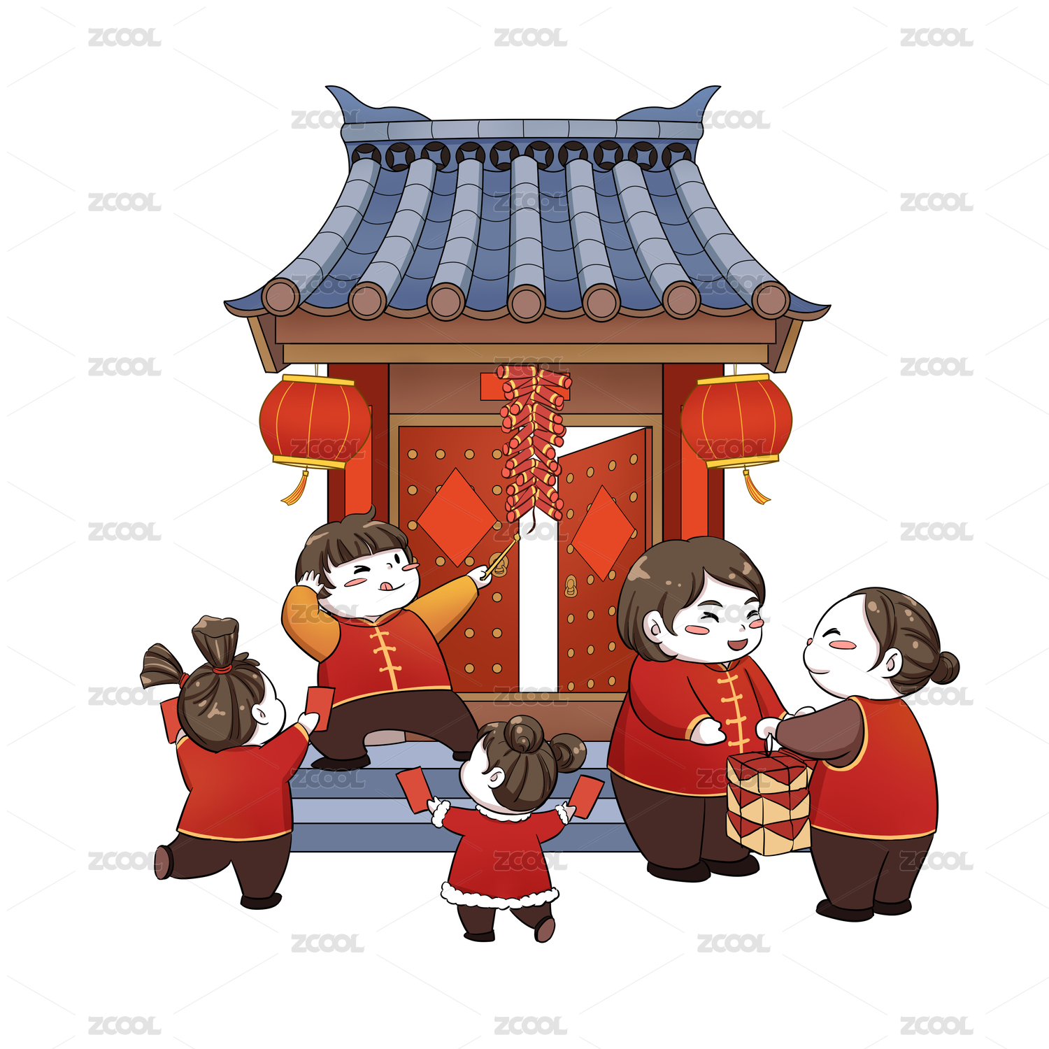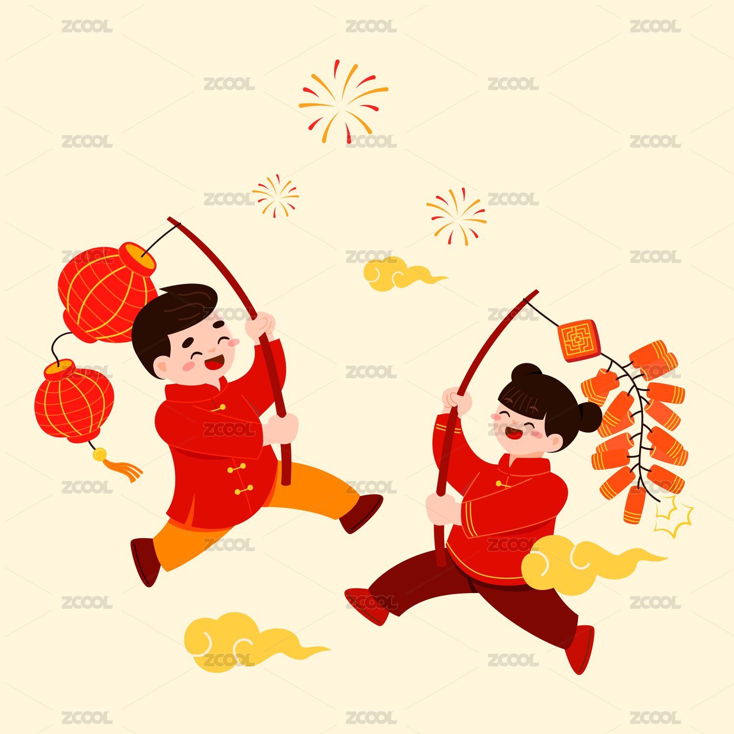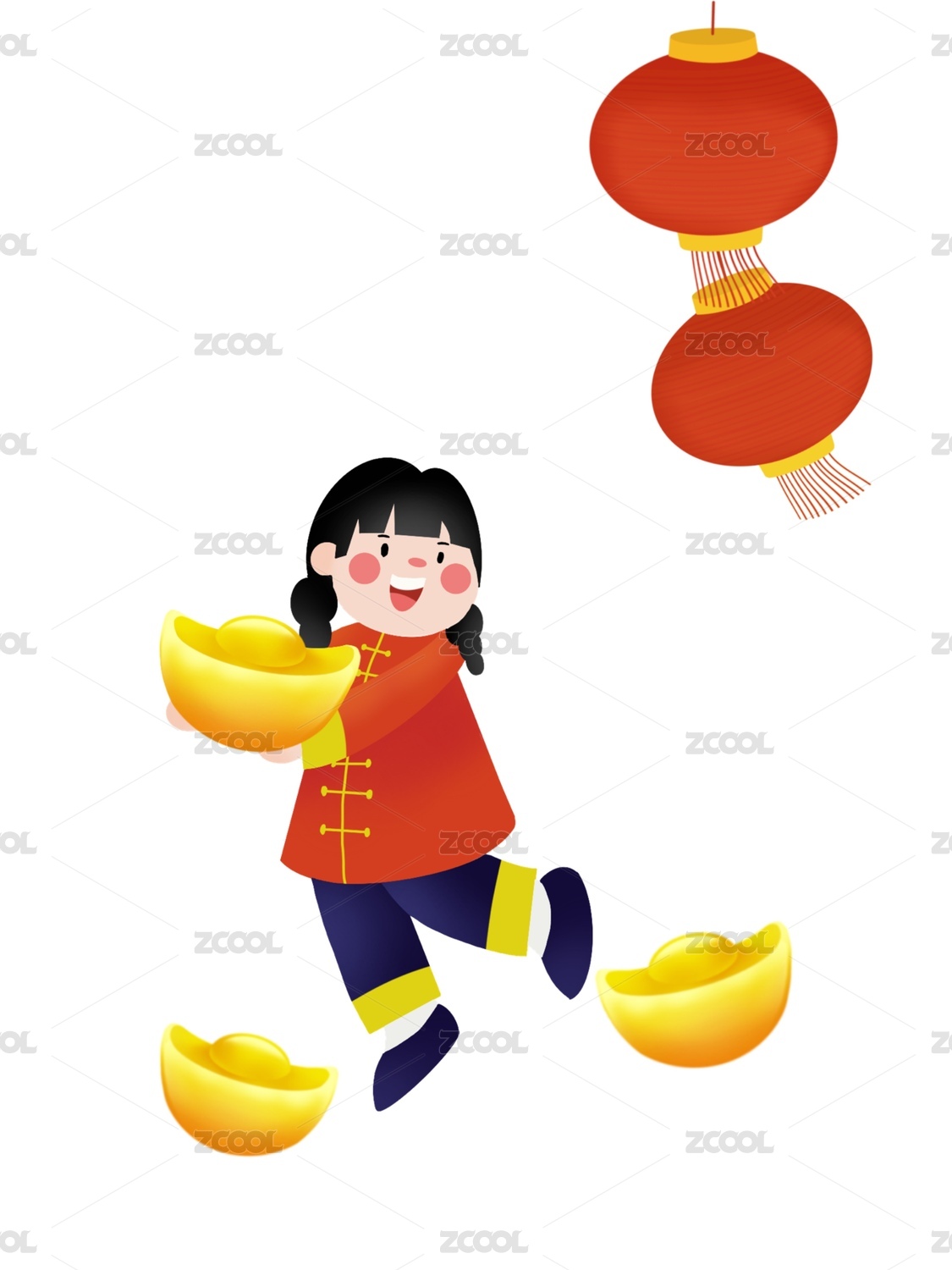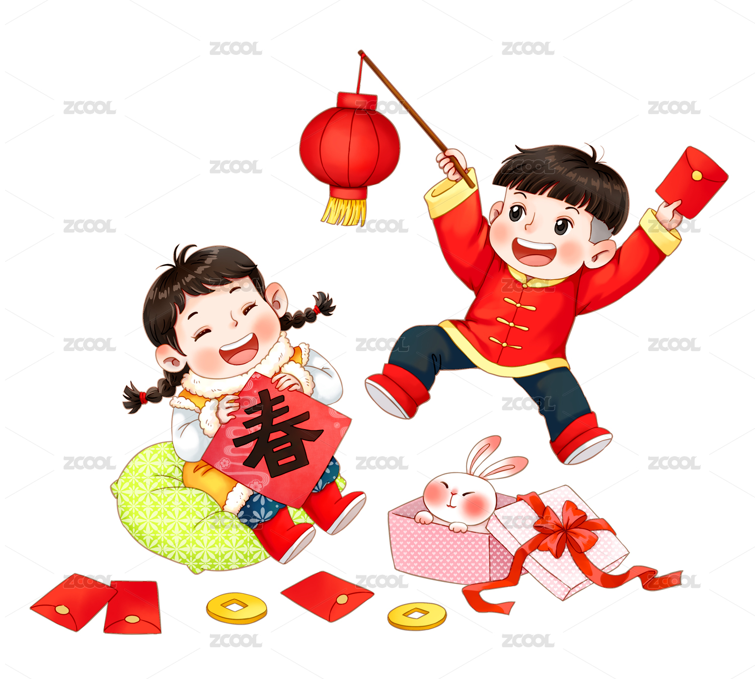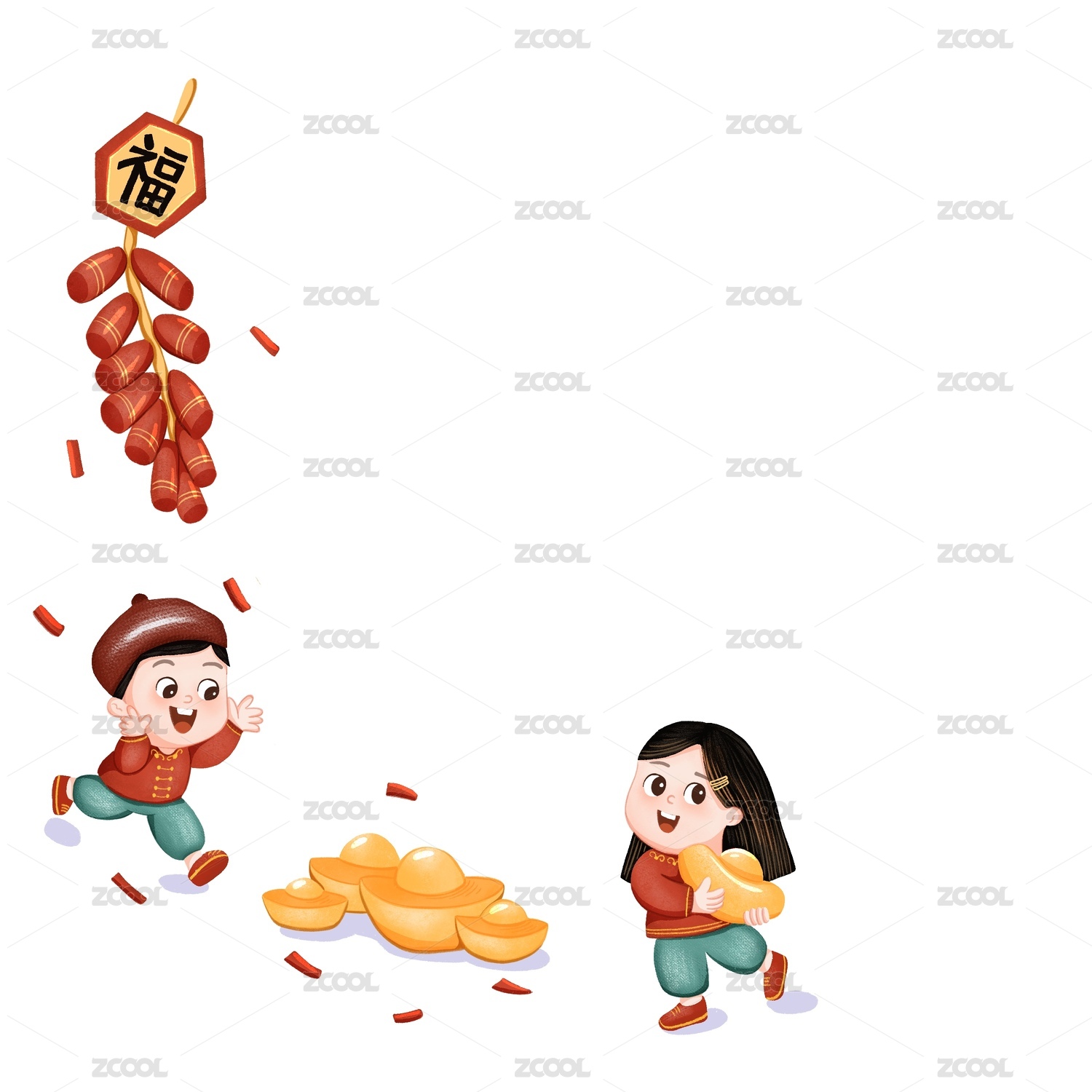 窗花,梅花,挂件,金币,新年,红包,小男孩,小女孩,灯笼,过年