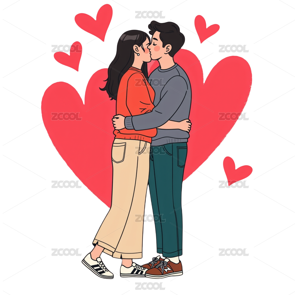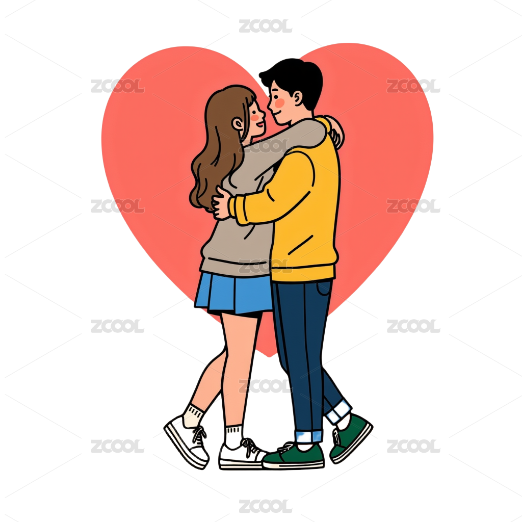 爱心情侣插画
