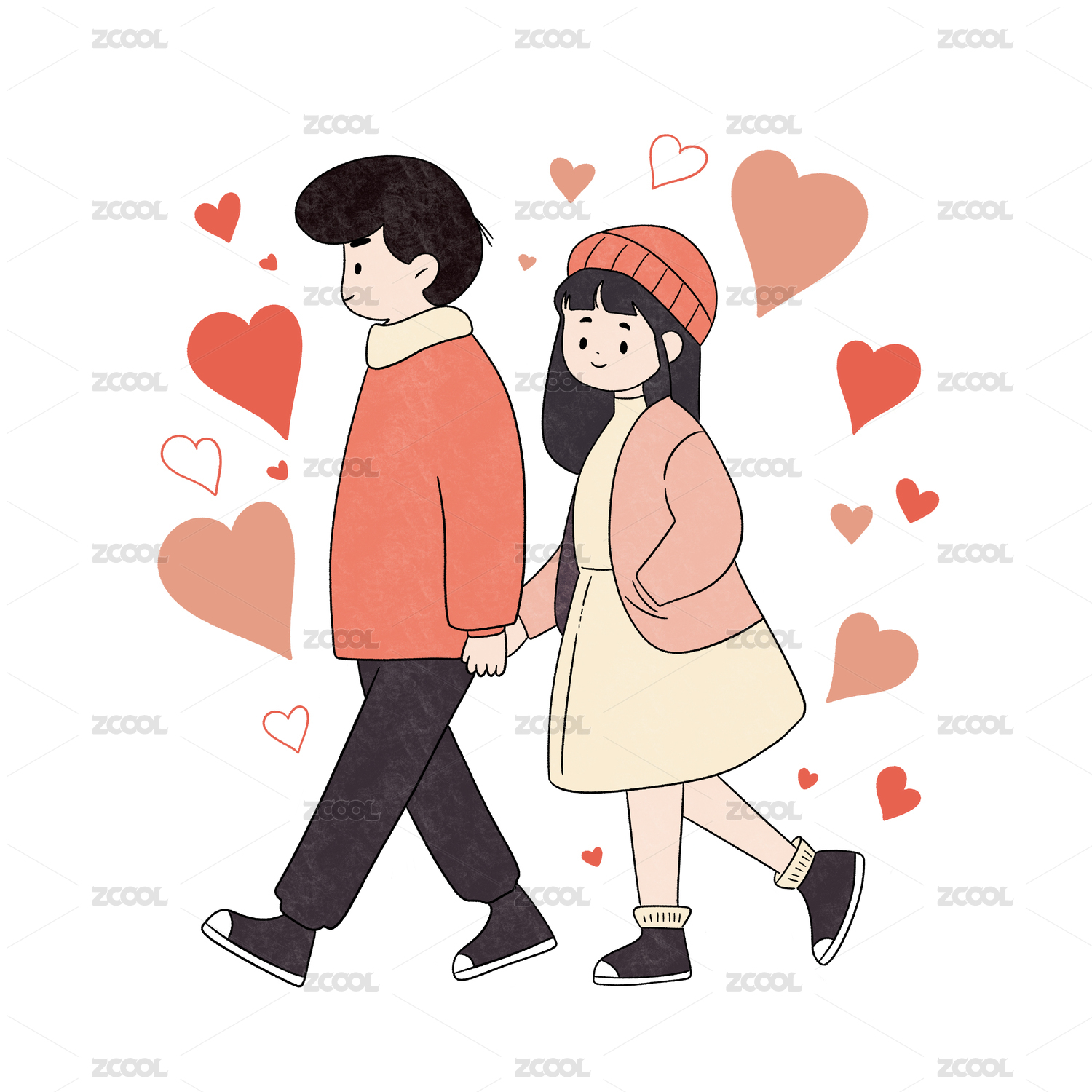 手牵手的情侣浪漫情人节爱心简笔画可爱插画