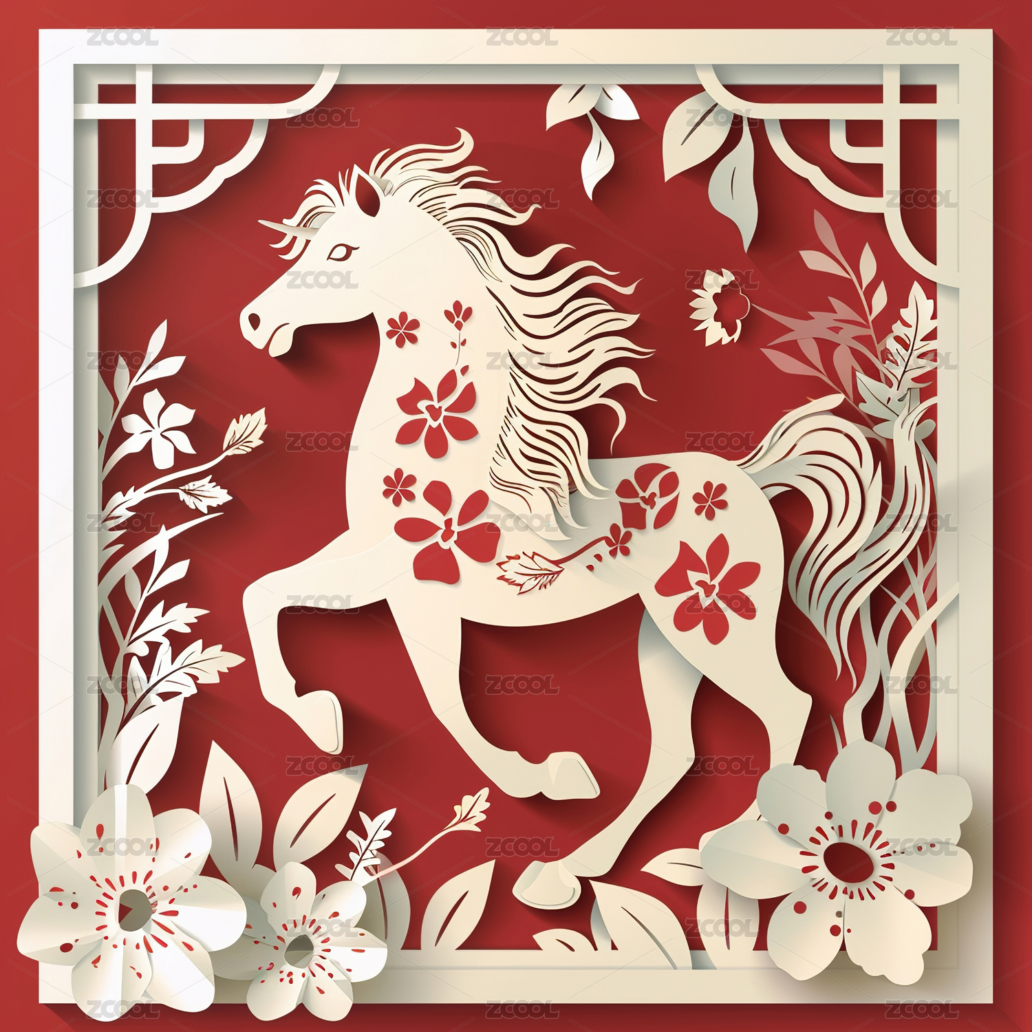 【AIGC】马的剪纸十二属相素材图片