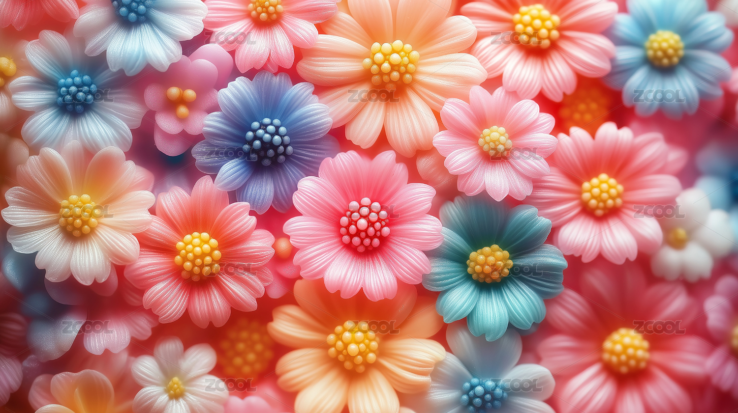 3d花卉工艺壁纸橙色绿色黄色花朵概念插图