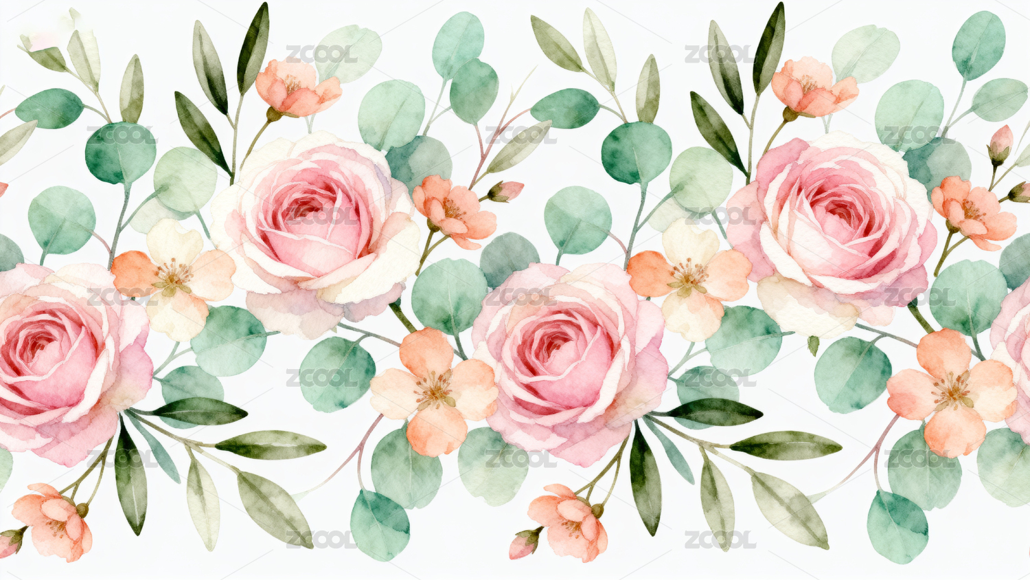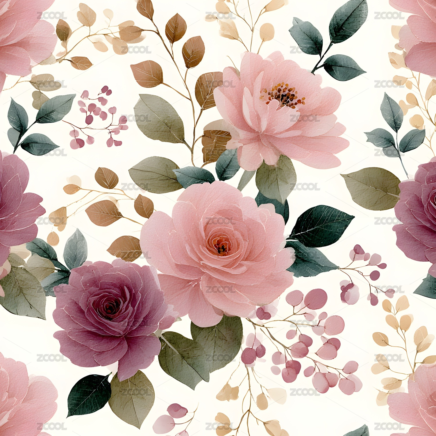 水彩玫瑰花图案