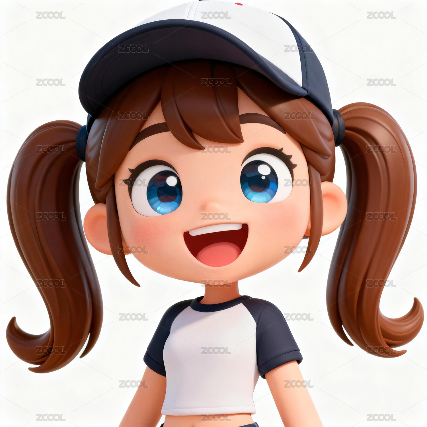 戴近视眼镜的小女孩儿童纯色背景3D卡通头