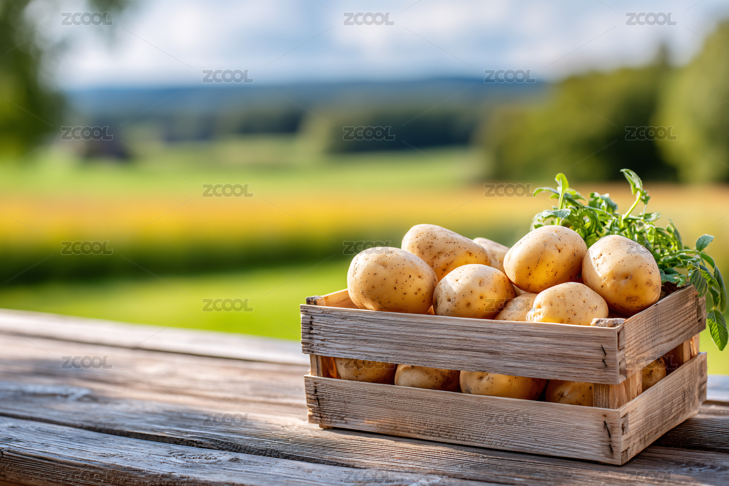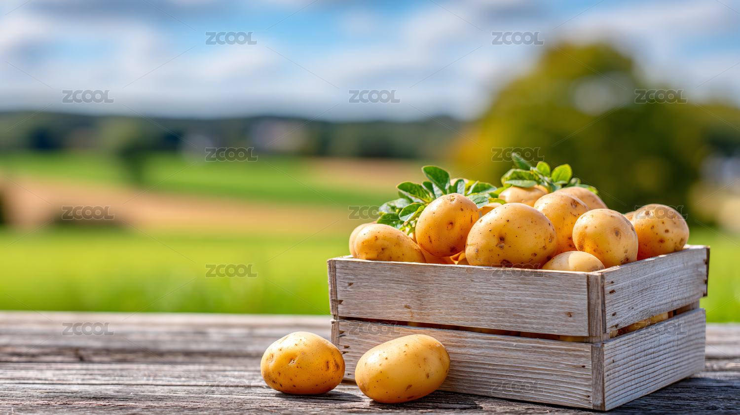 新鲜土豆配绿叶
