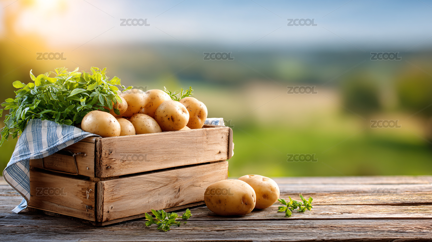 金色阳光下的马铃薯