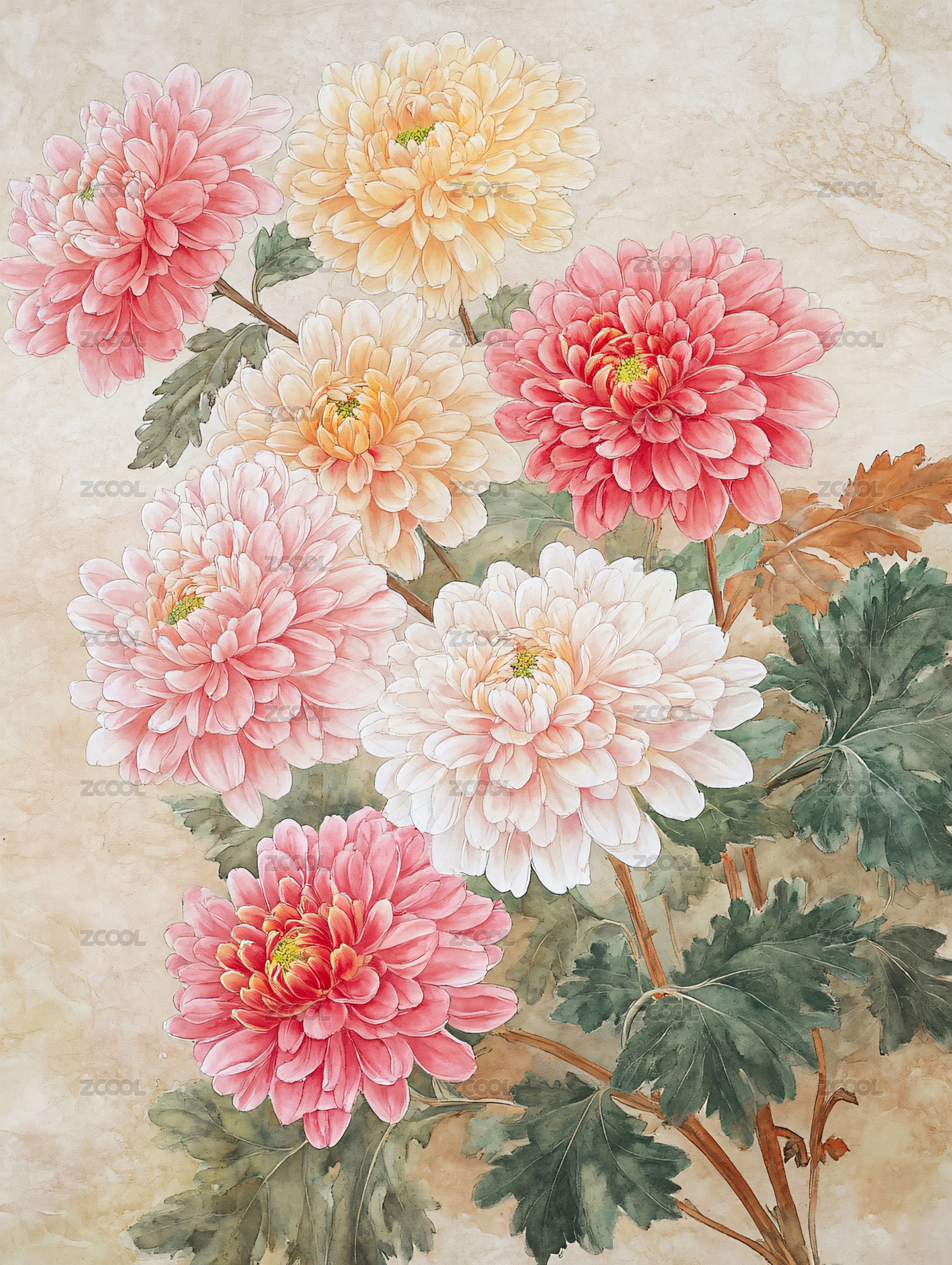 水彩菊花花卉图案