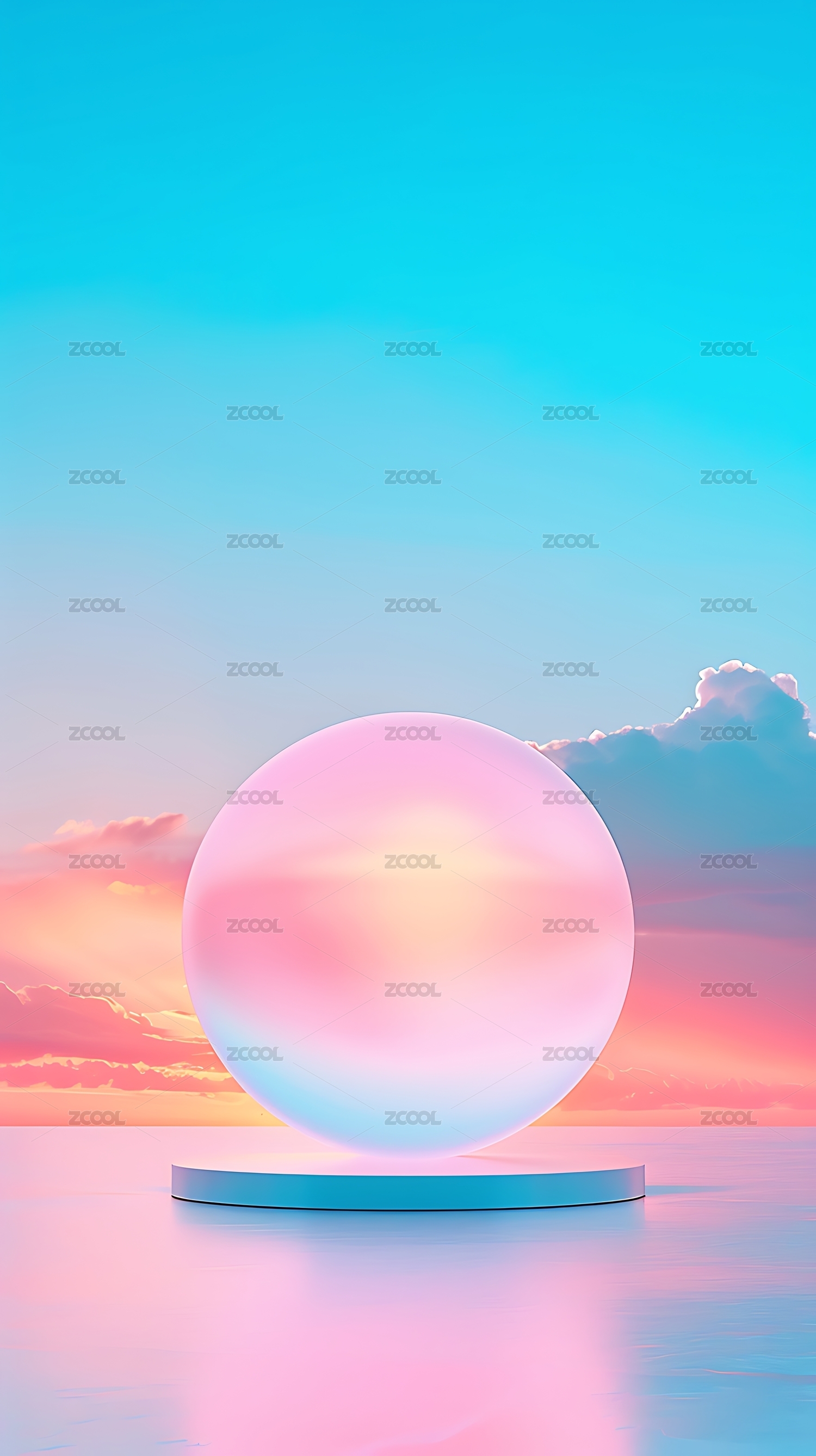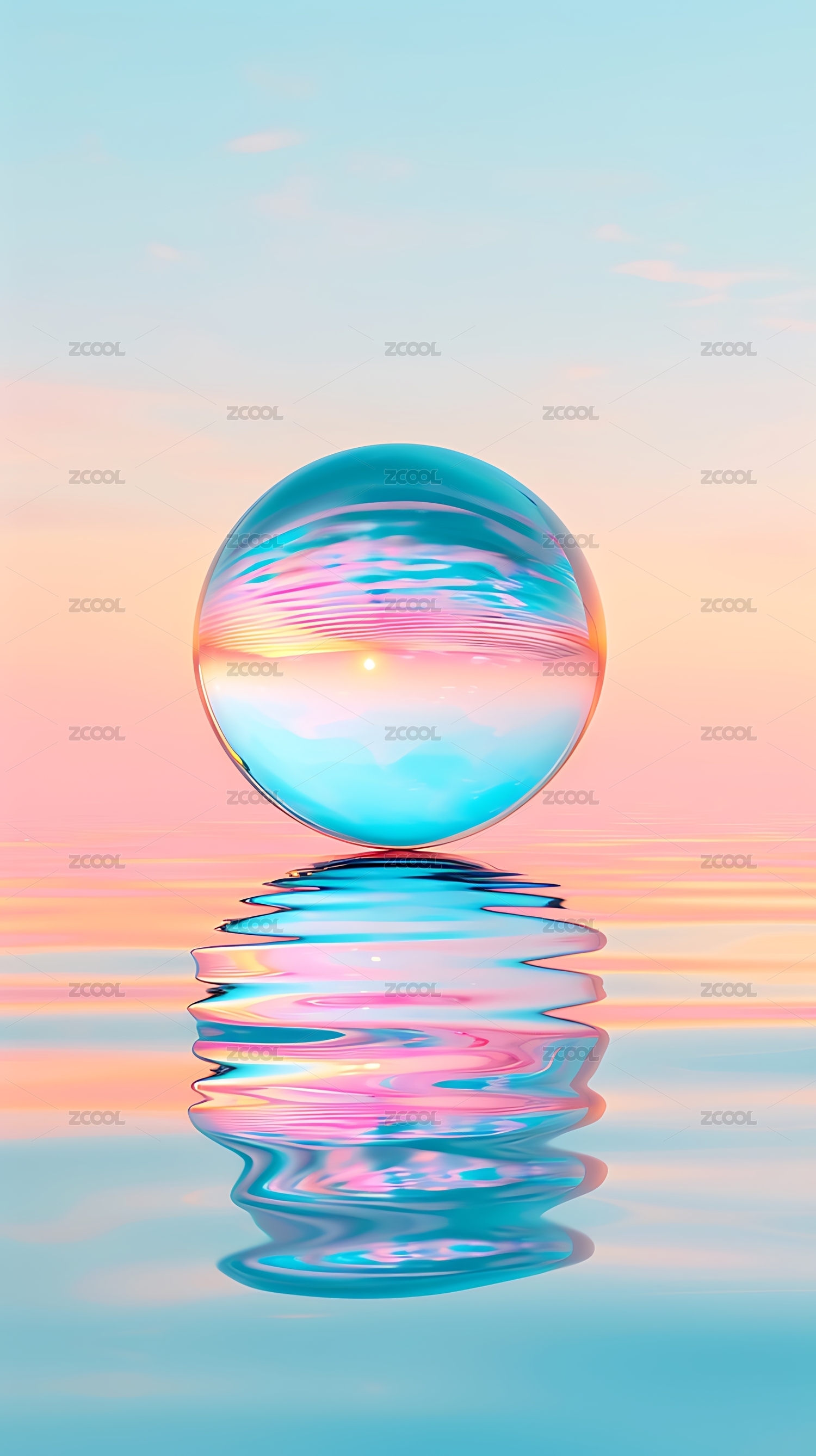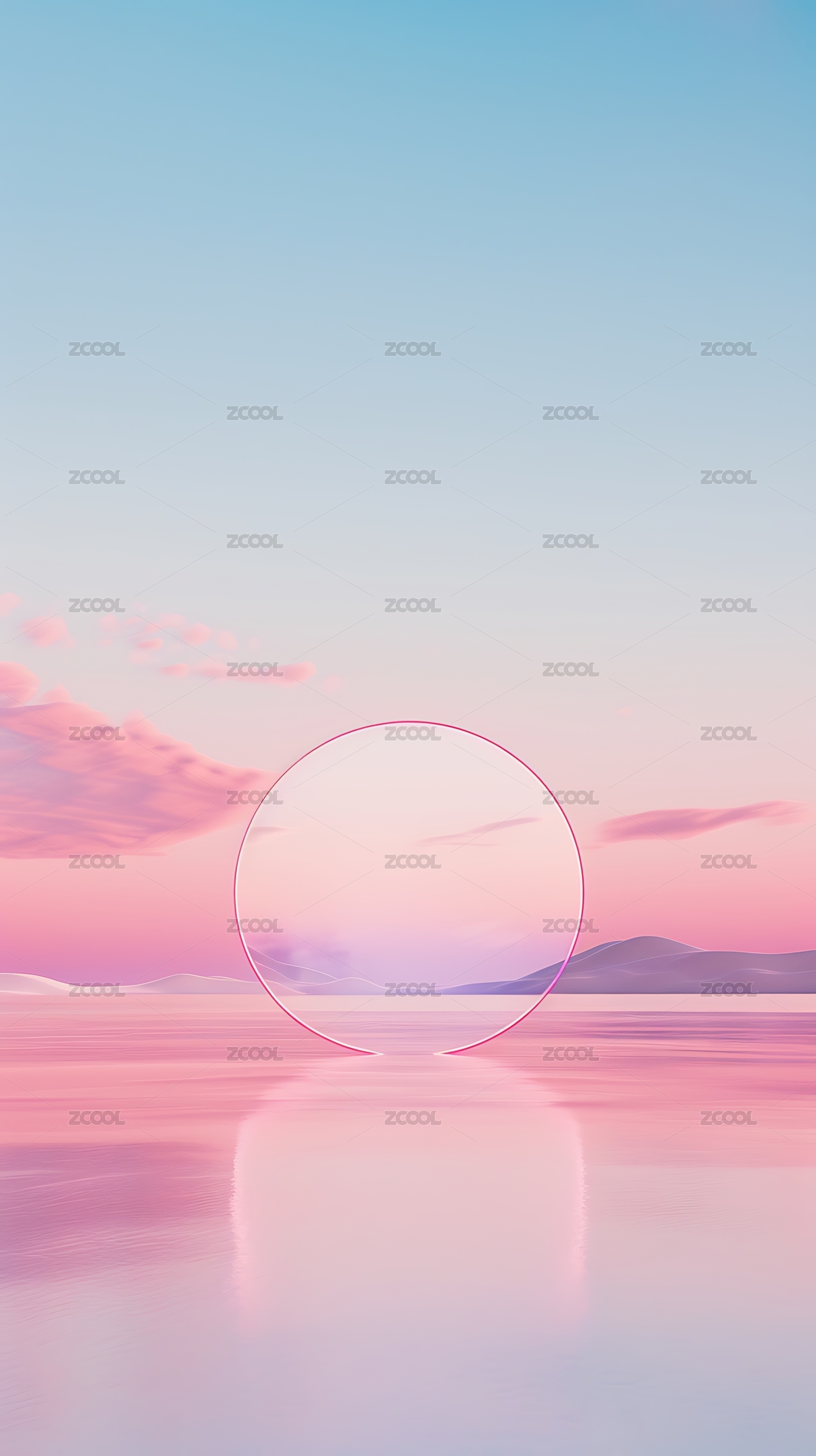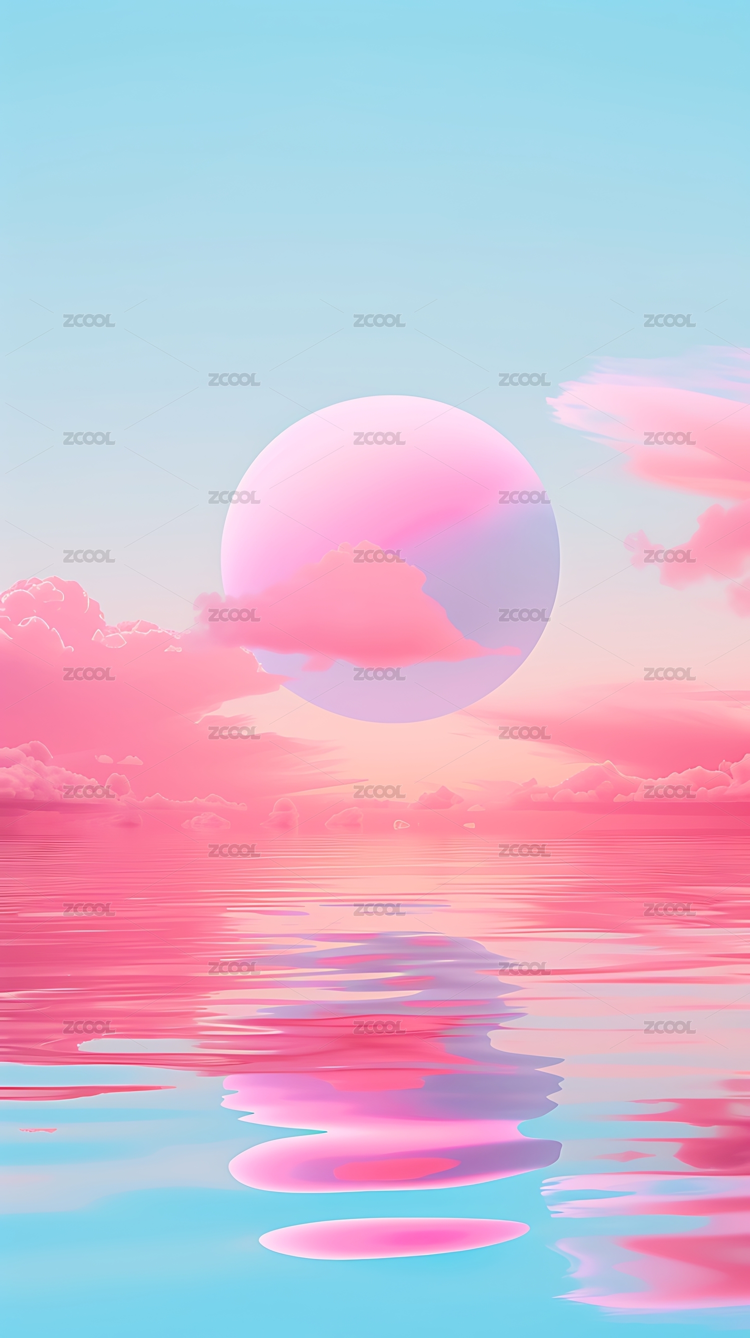 海洋,梦幻,水彩,光线,粉色,天空,唯美,日落,平静,反射