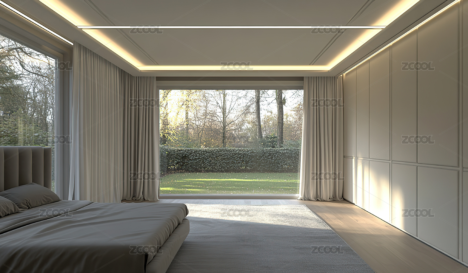 卧室,现代,简约,自然光,大窗户,舒适,温馨,室内,设计,床头灯