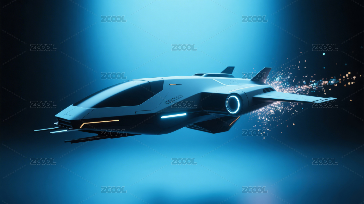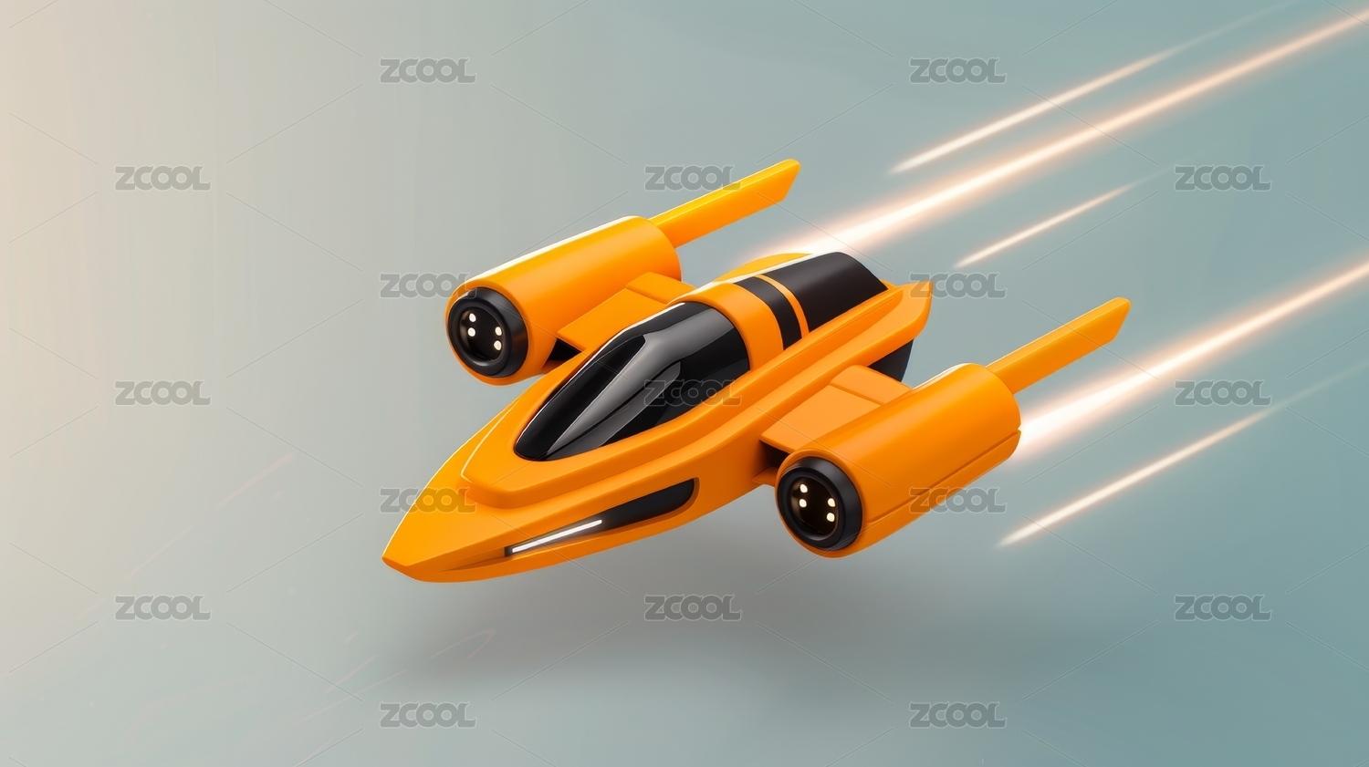 橙色未来飞行器高速飞行