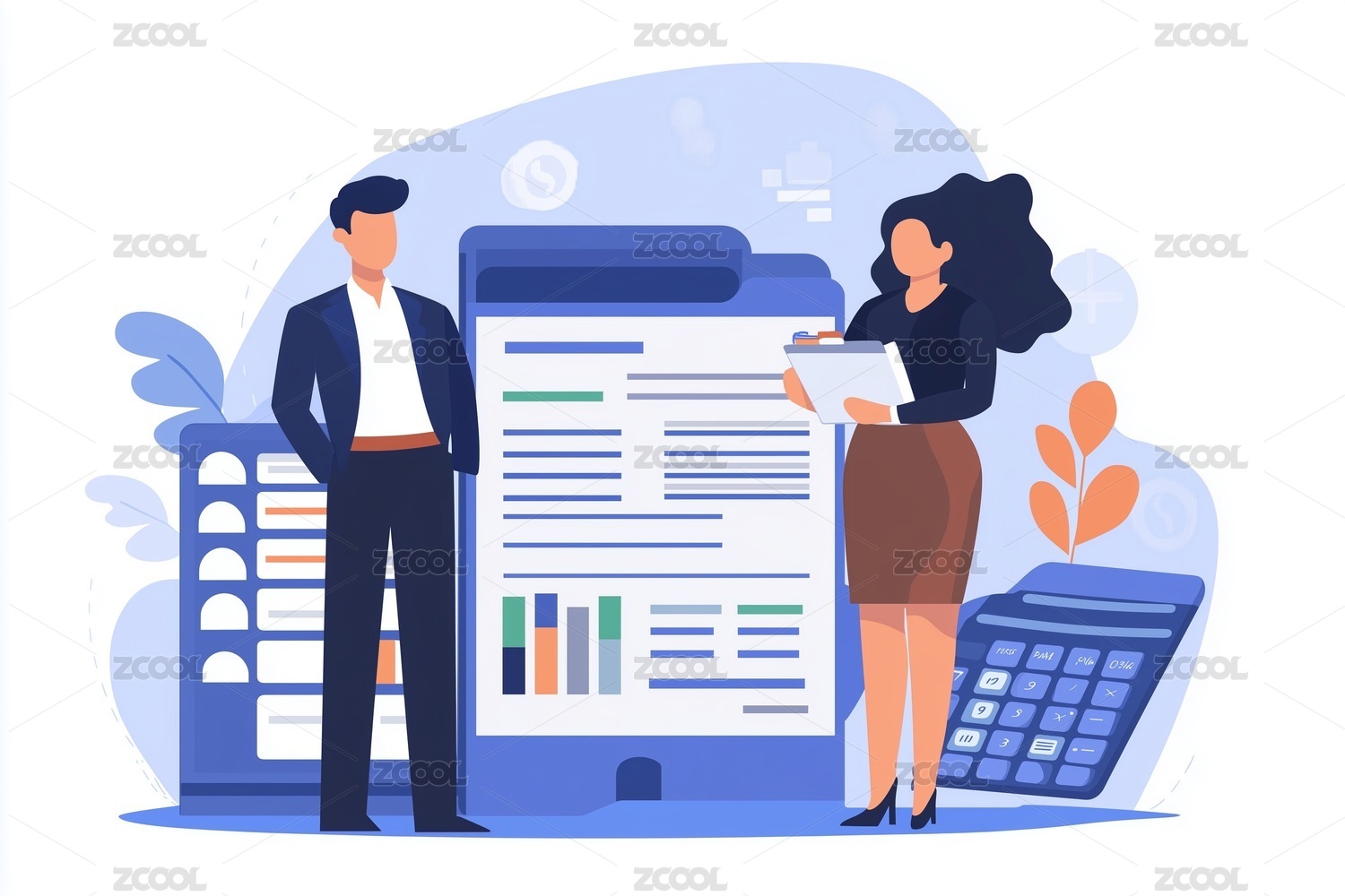 邀请问卷调查, 手绘扁平人物场景创意概念插画