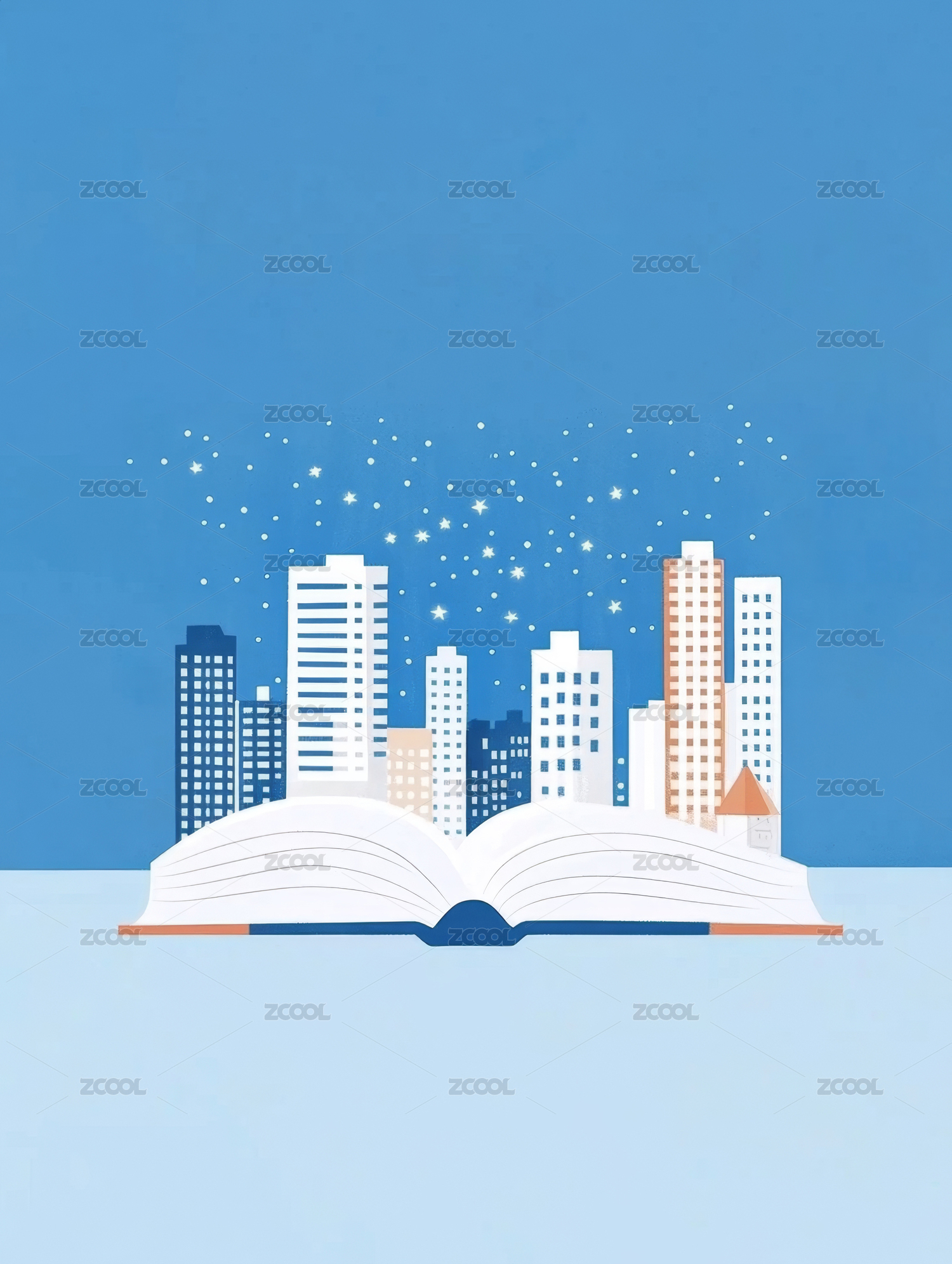 书本,小镇,路灯,建筑,街道,秋天,落叶,天空,云朵