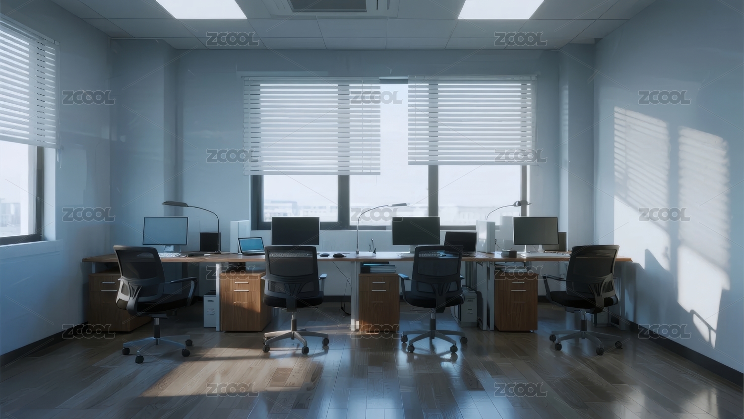 办公室,工作区,电脑,椅子,桌子,植物,窗户,灯光,文件柜,白板