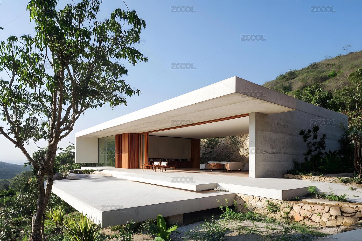现代,别墅,夜景,灯光,山景,户外,建筑,豪华,设计
