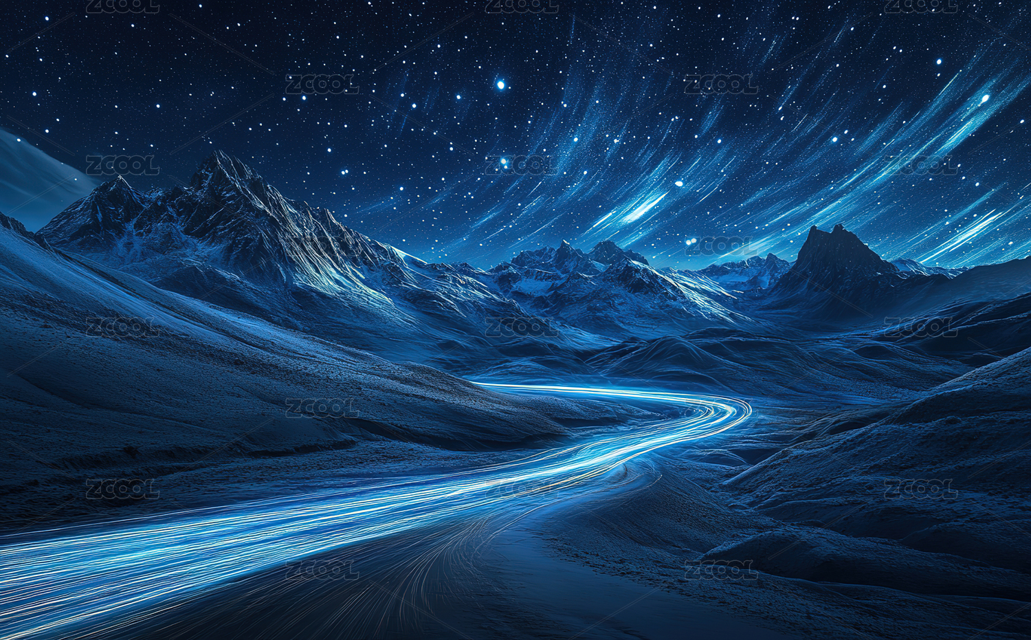 深蓝,光轨,波浪,光点,抽象,梦幻,动感,背景,波浪形,闪烁