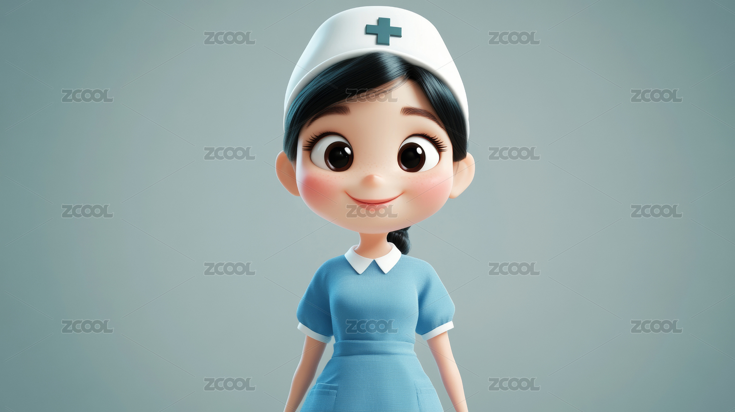 背景,清新,卡通,女孩,护士,可爱,3D,渲染,制服,帽子