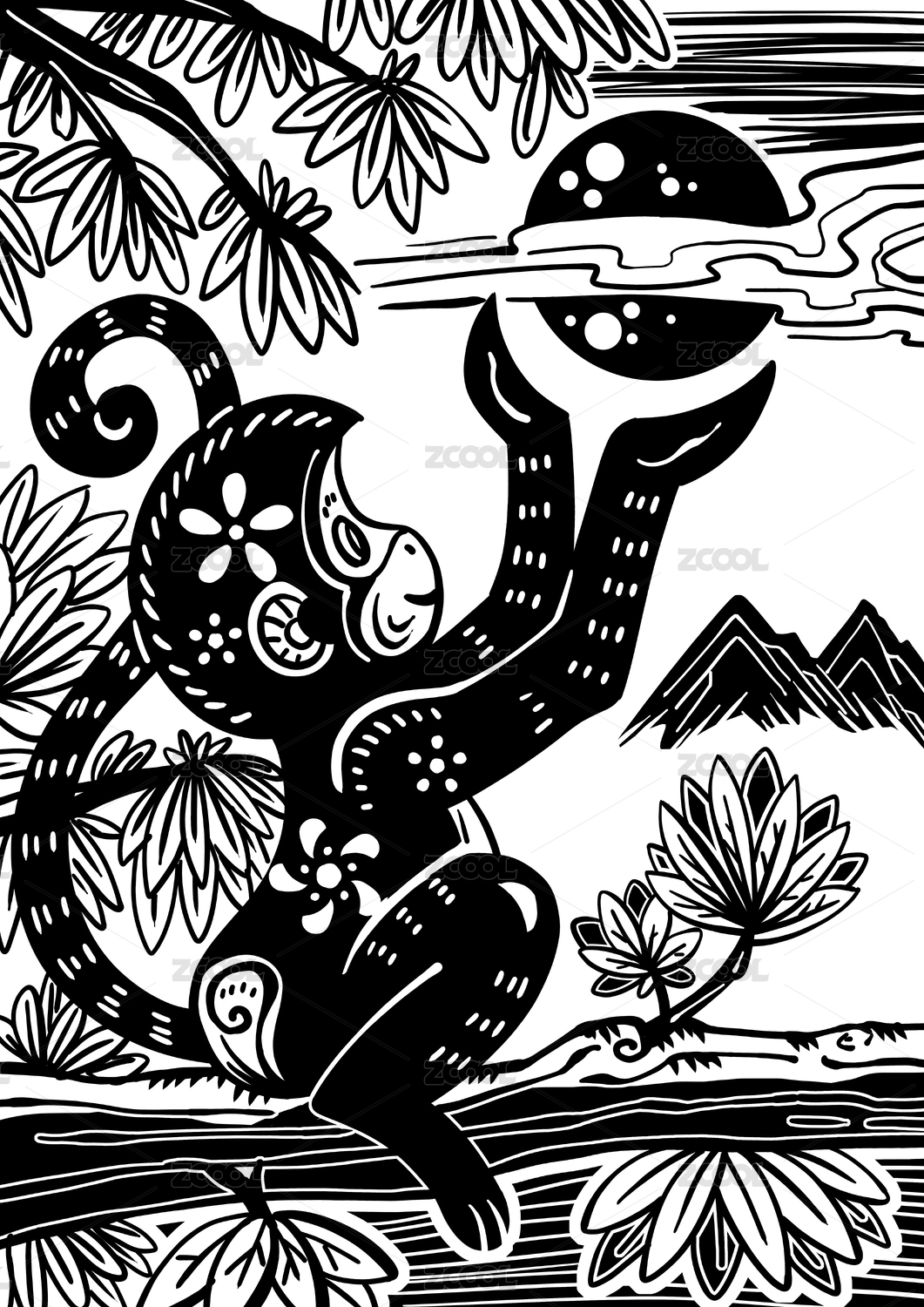 蛇年素材线条插画