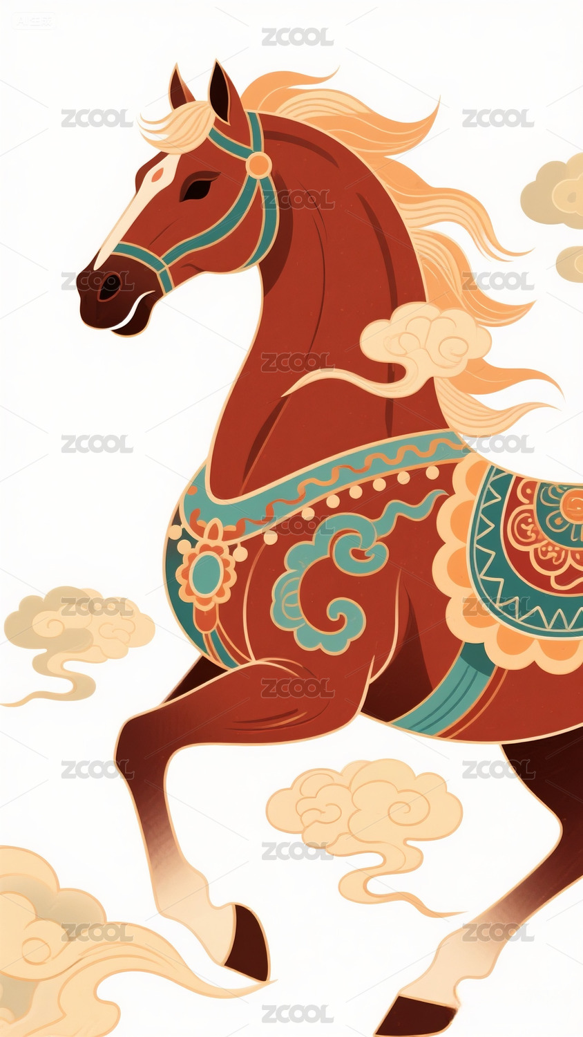 敦煌风格花纹马图案
