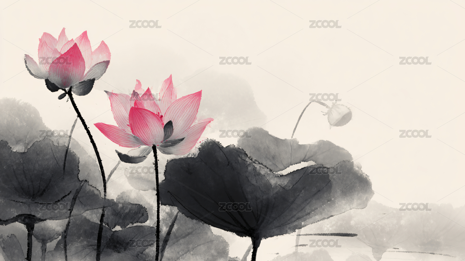 淡雅,水墨,荷花,粉红色,花瓣,生机,荷叶,墨绿,浅绿,层次