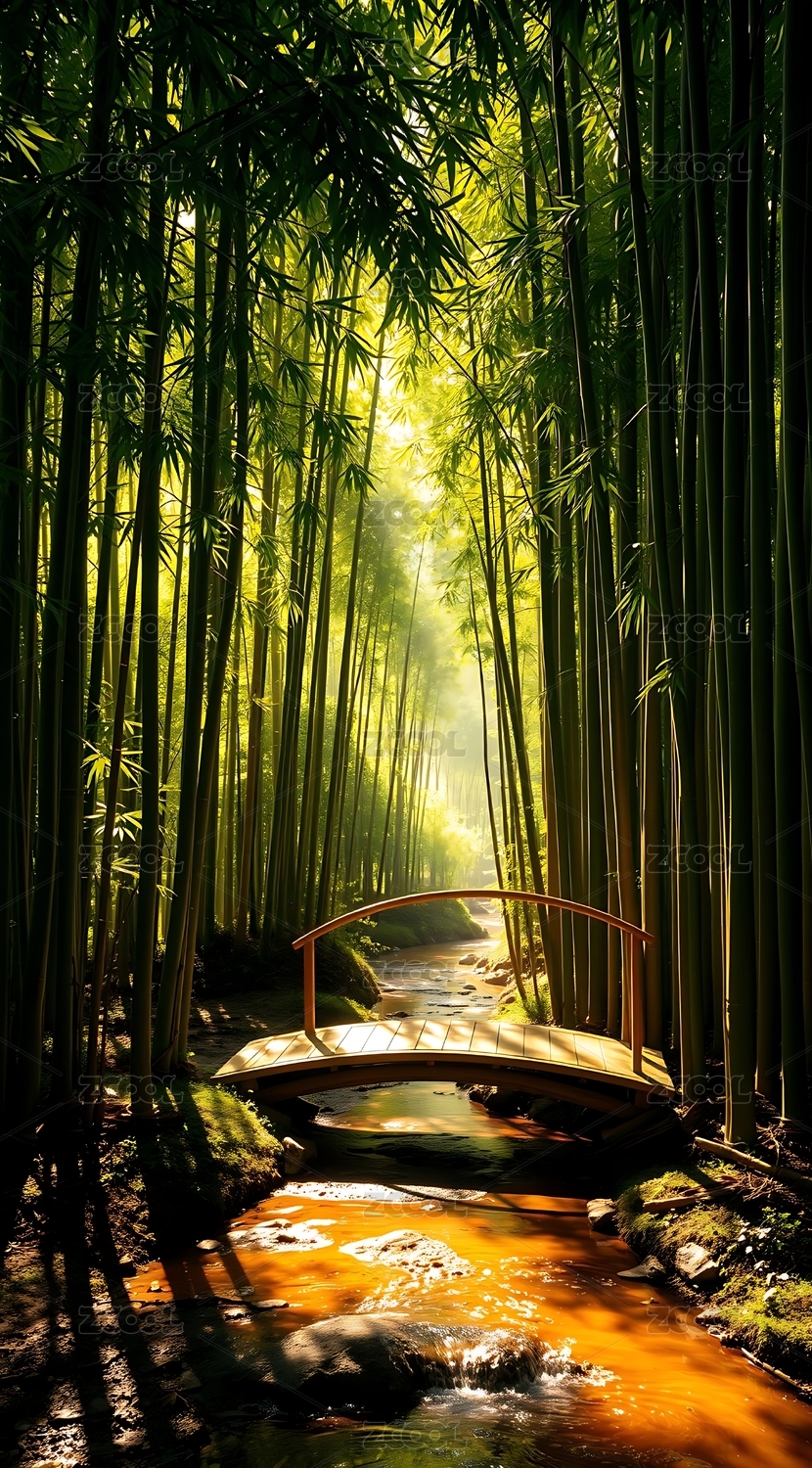 竹林,溪流,小溪,绿色,竹子,水流,绿水,树木,凉爽,林荫