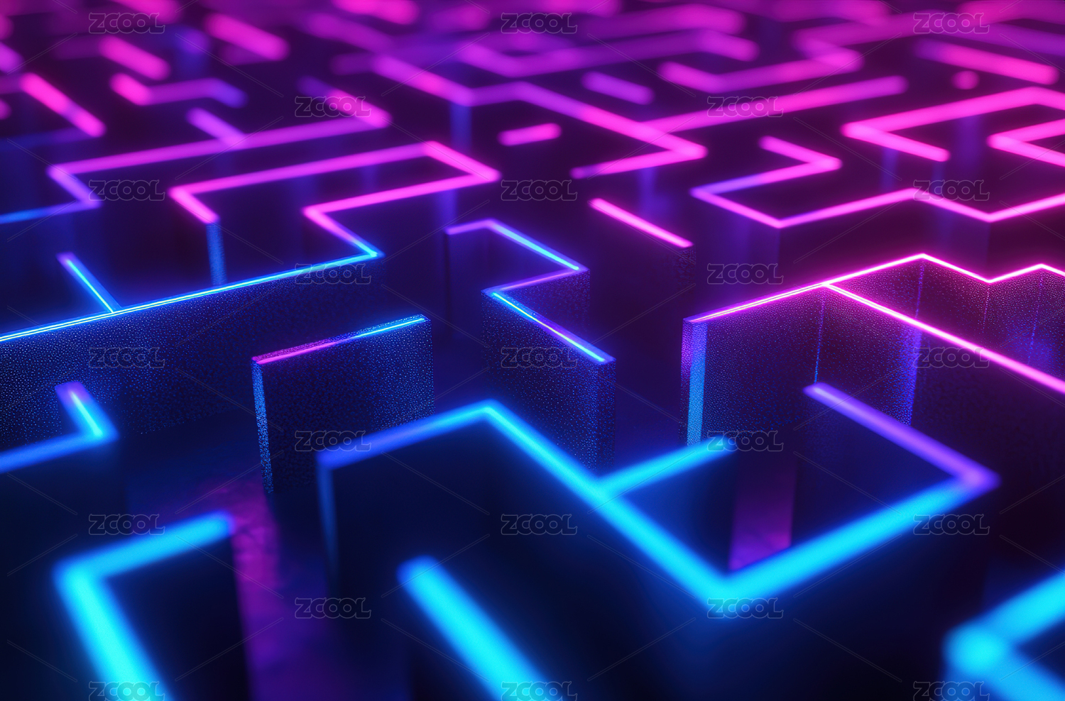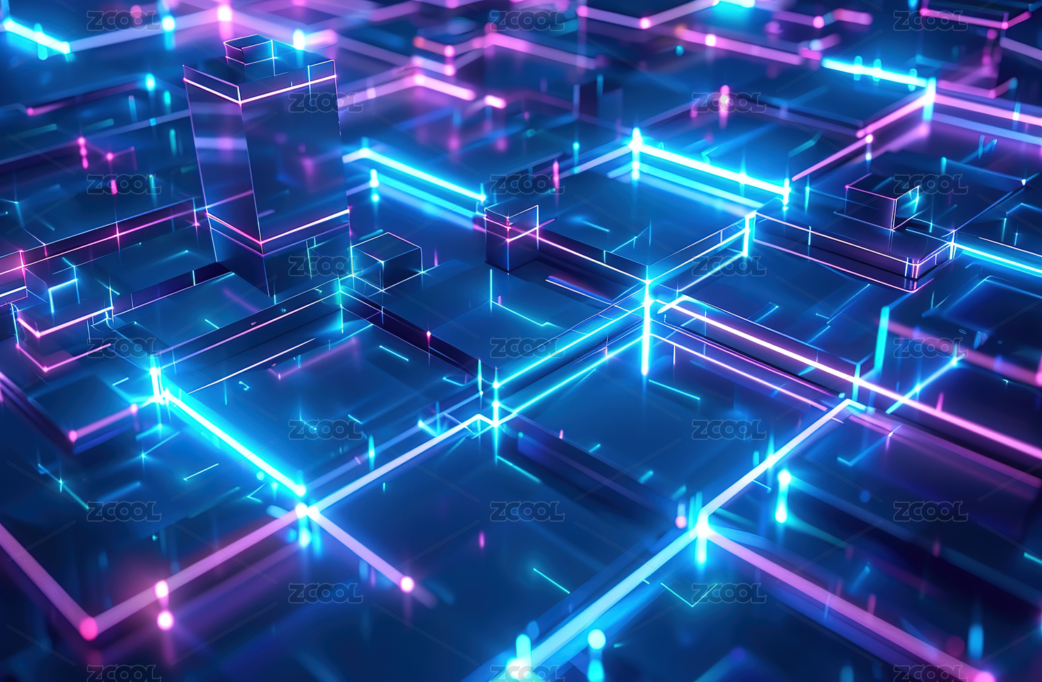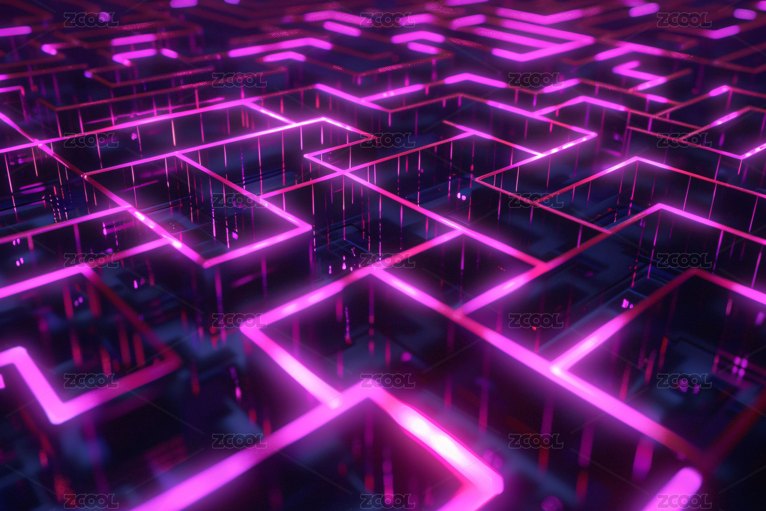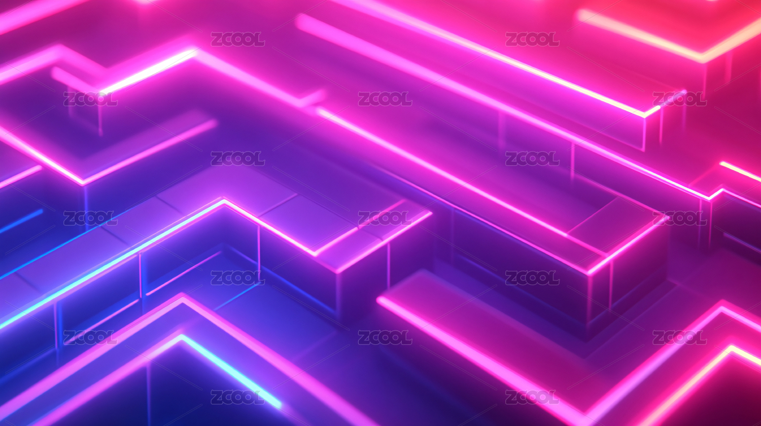 抽象霓虹灯发光几何线条3D渲染商务背景