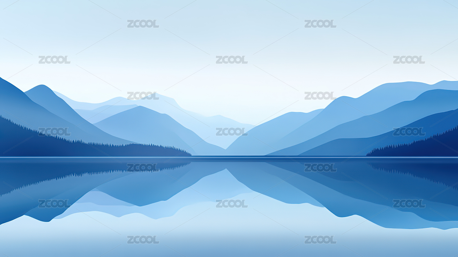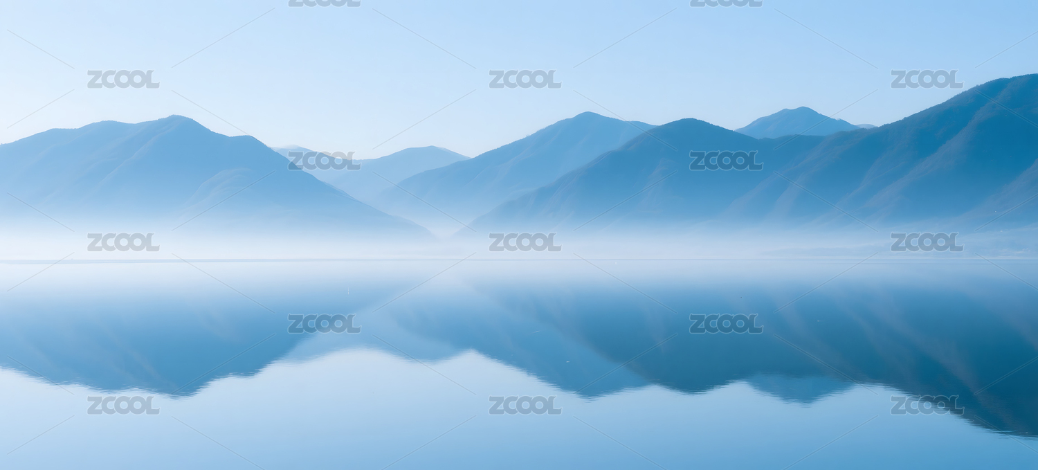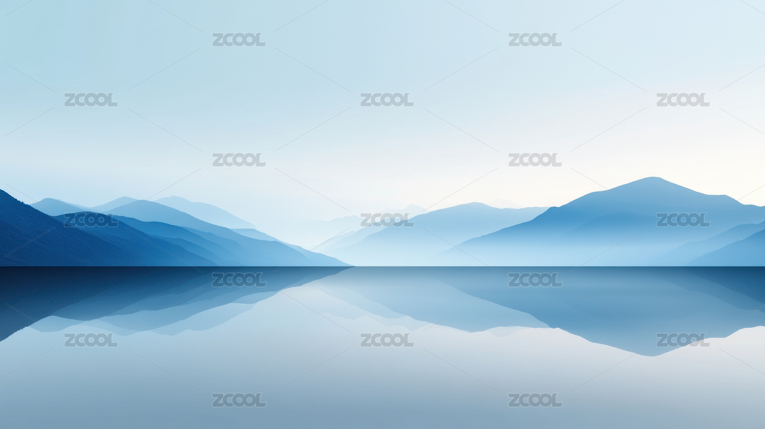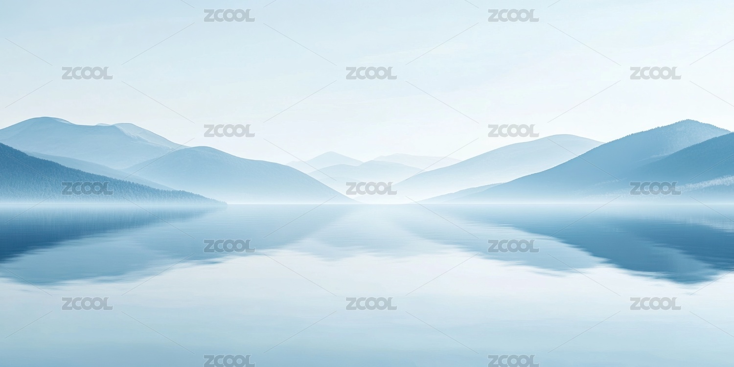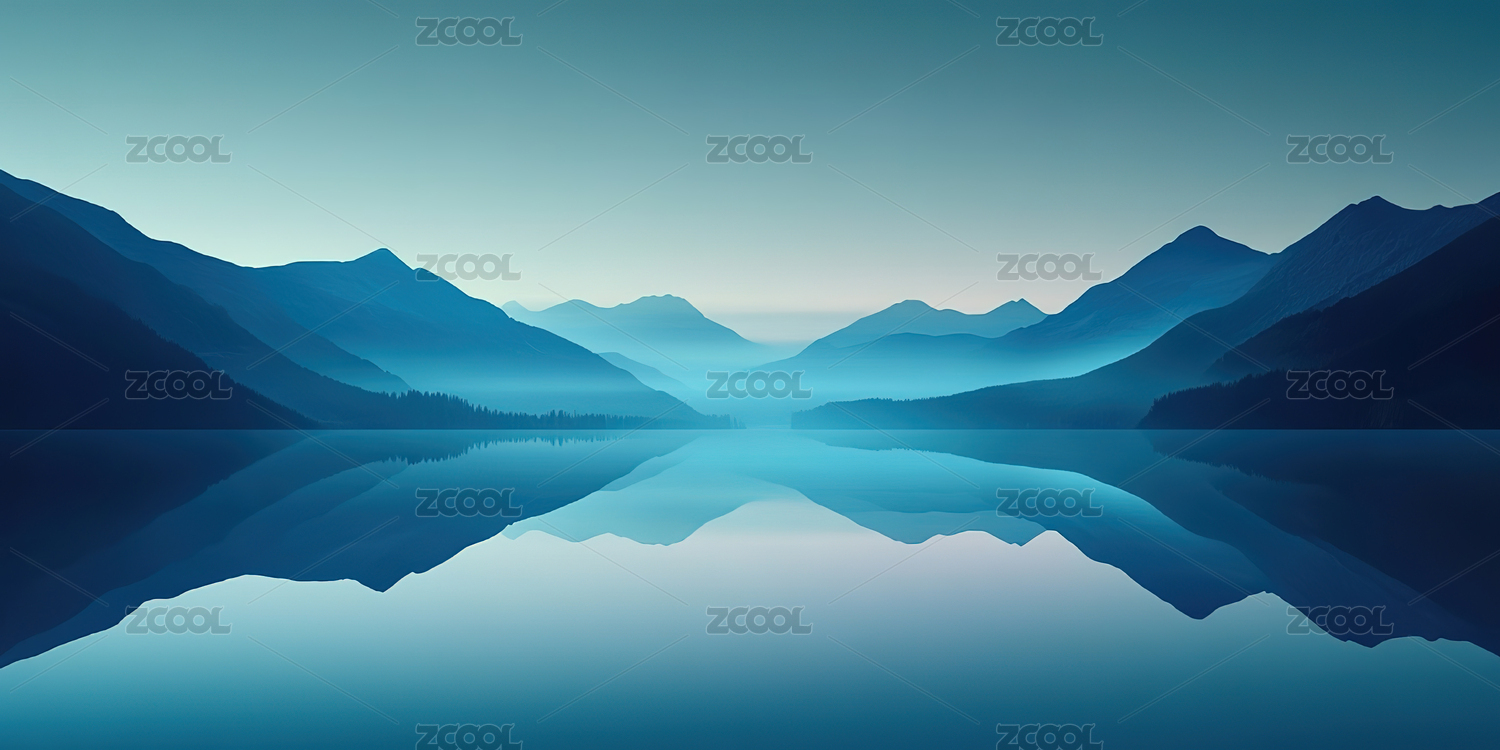 抽象蓝色背景带有山和水的倒影