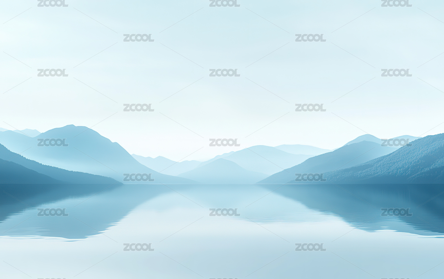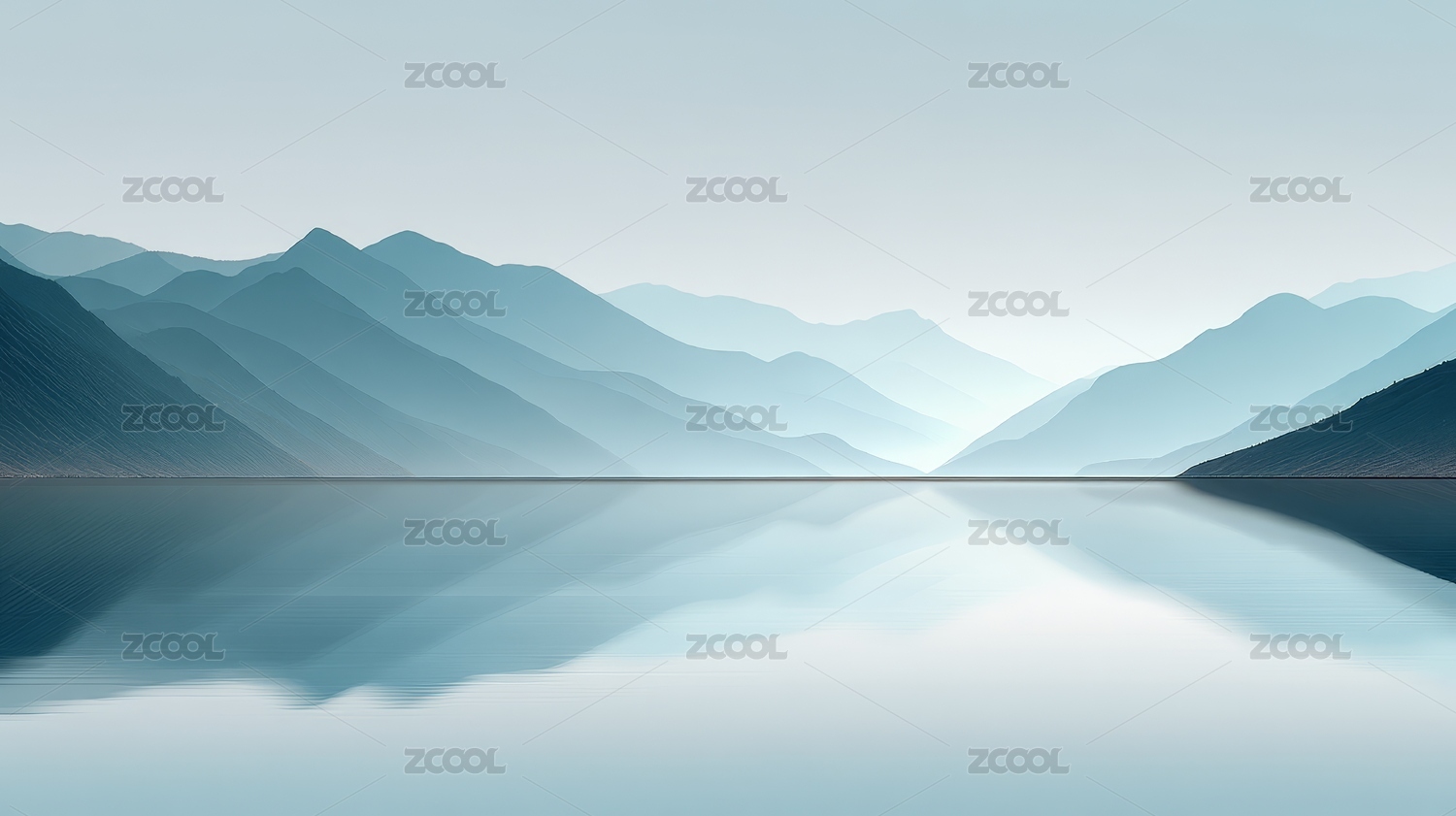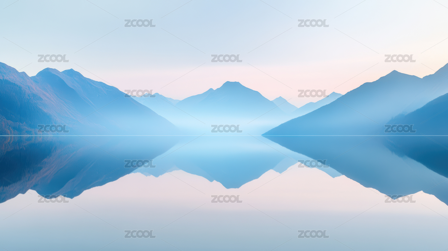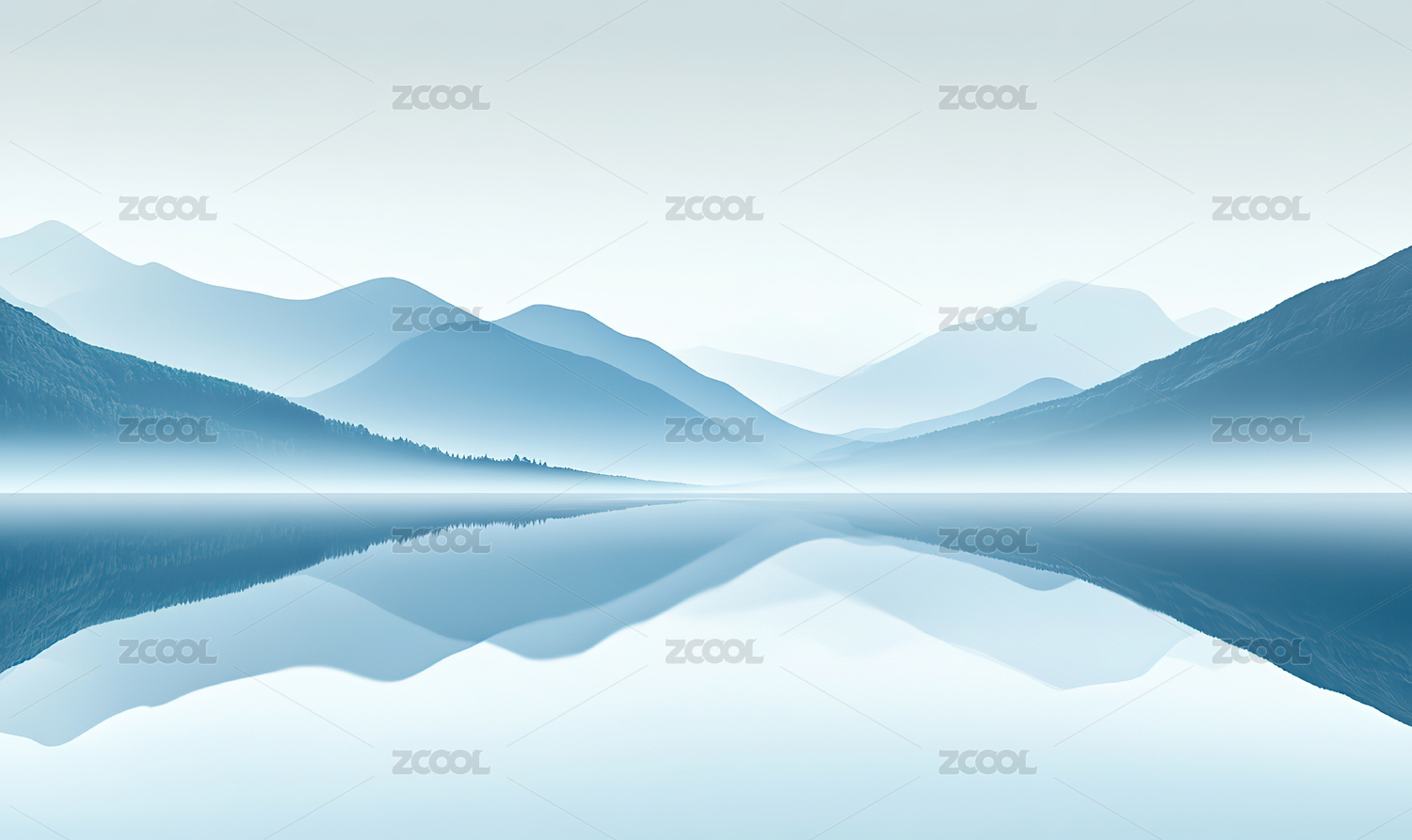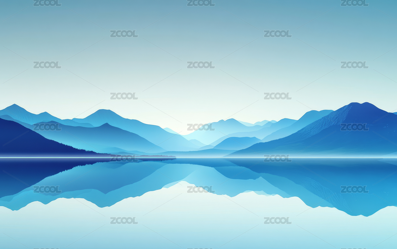 抽象蓝色背景带有山和水的倒影