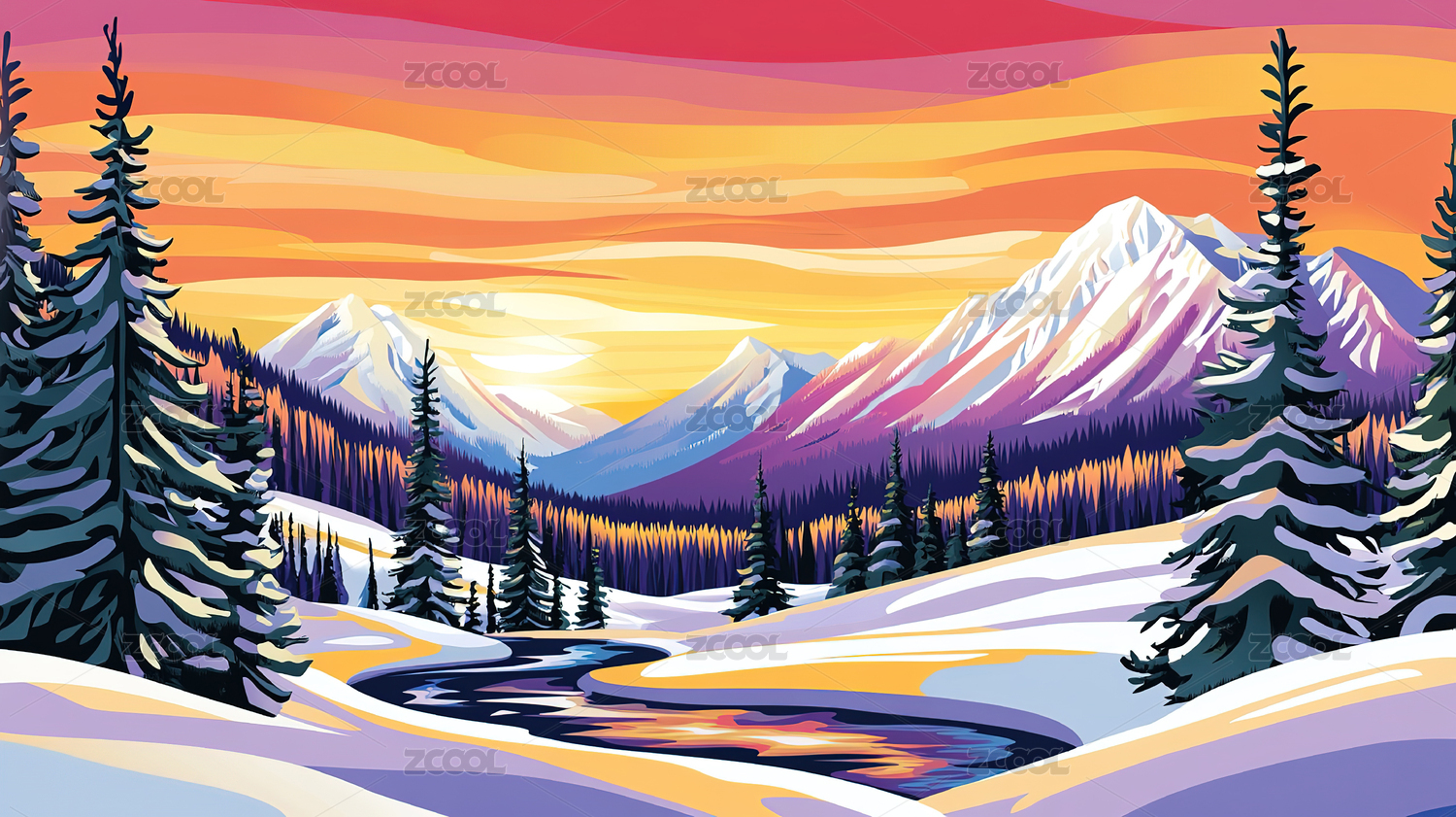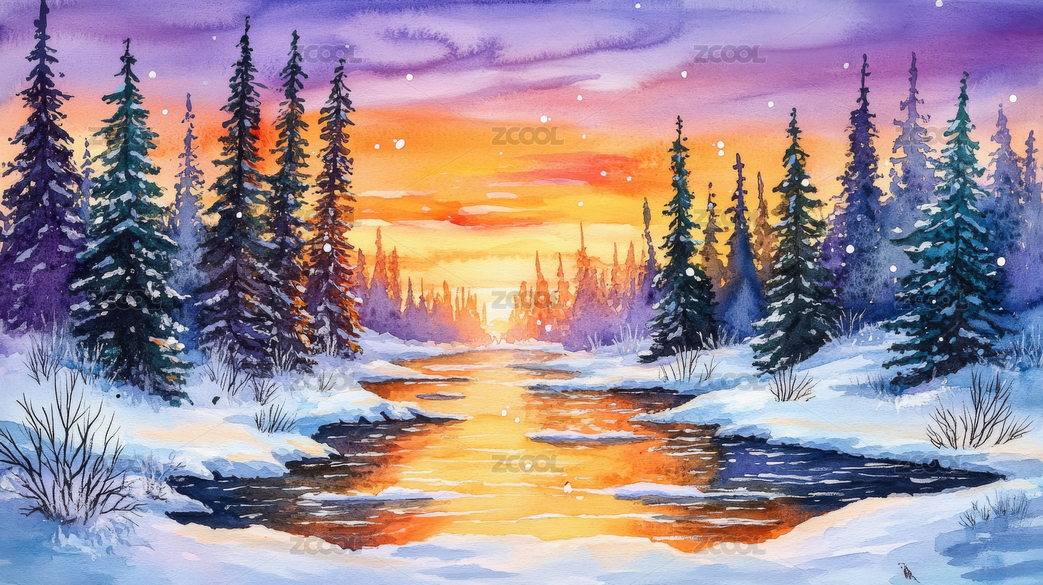 景色,色彩,梦幻,奇观,树木,夜晚,唯美,雪景,冬季,风景
