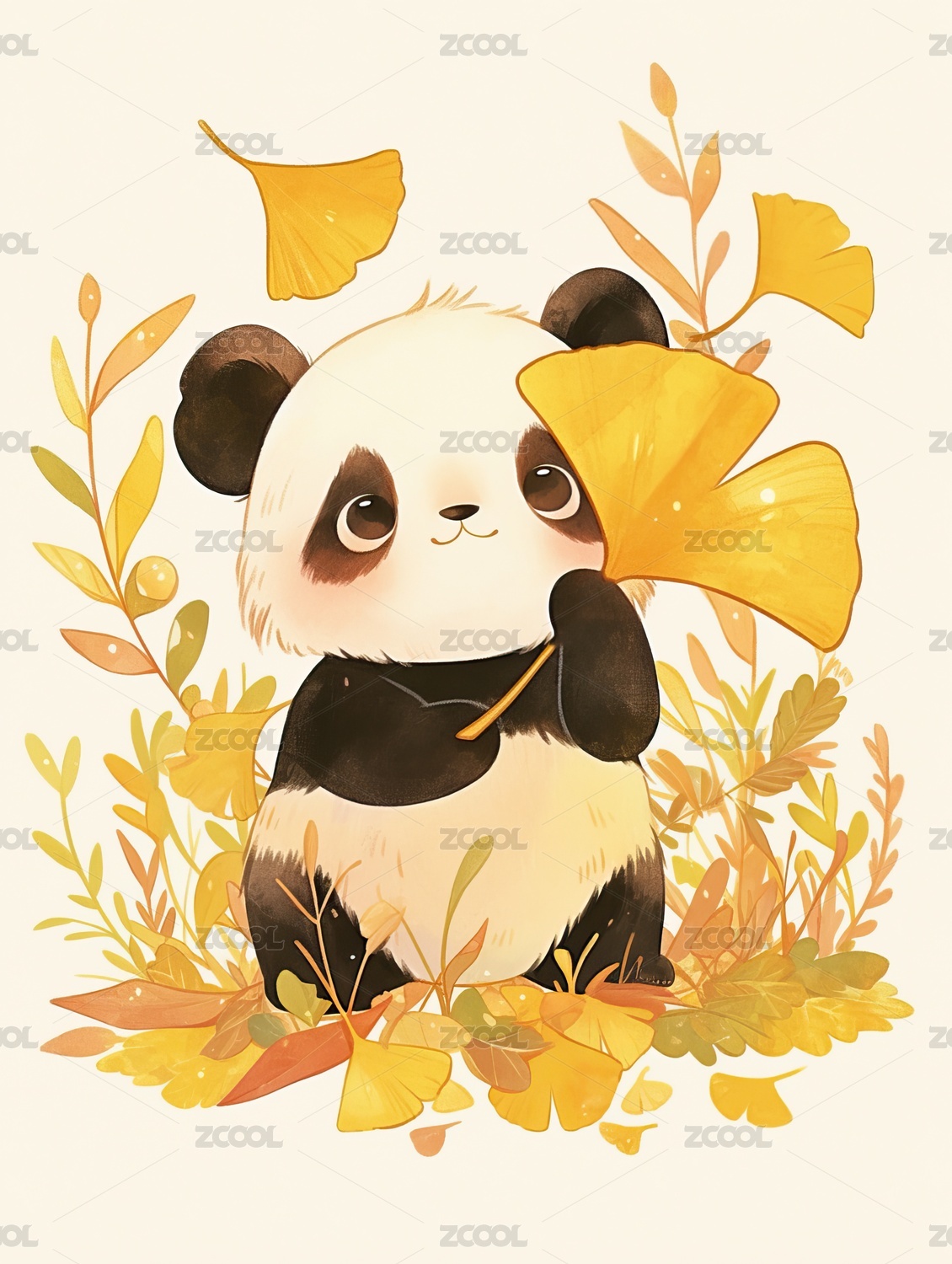 秋天可爱熊猫卡通插画