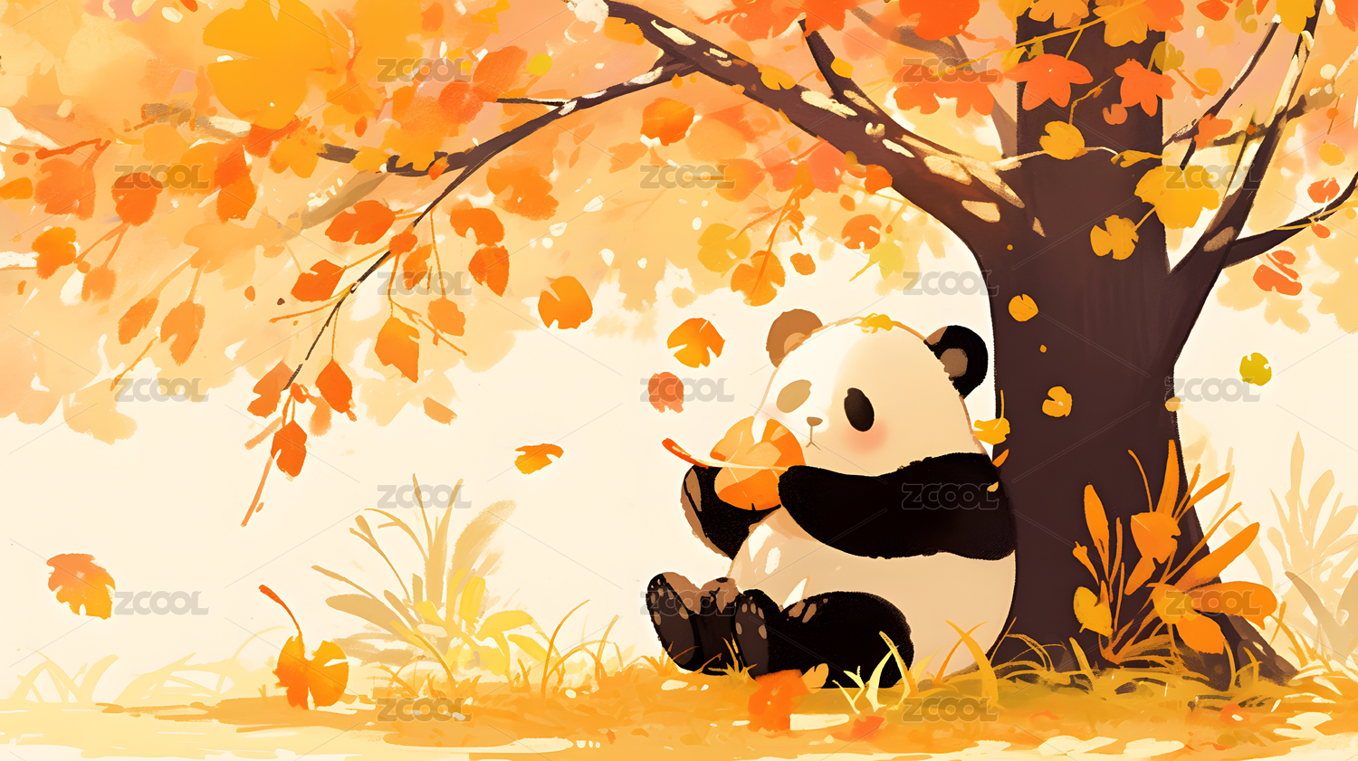 秋日金黄树下熊猫