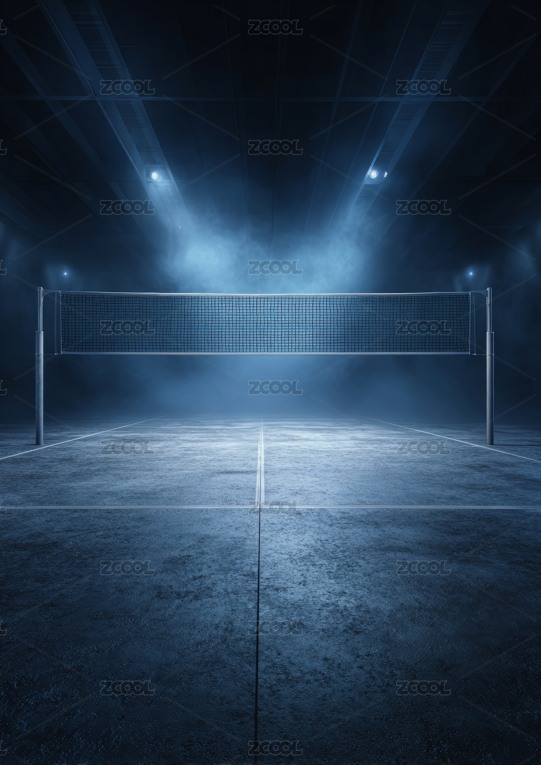 灯光下的排球场