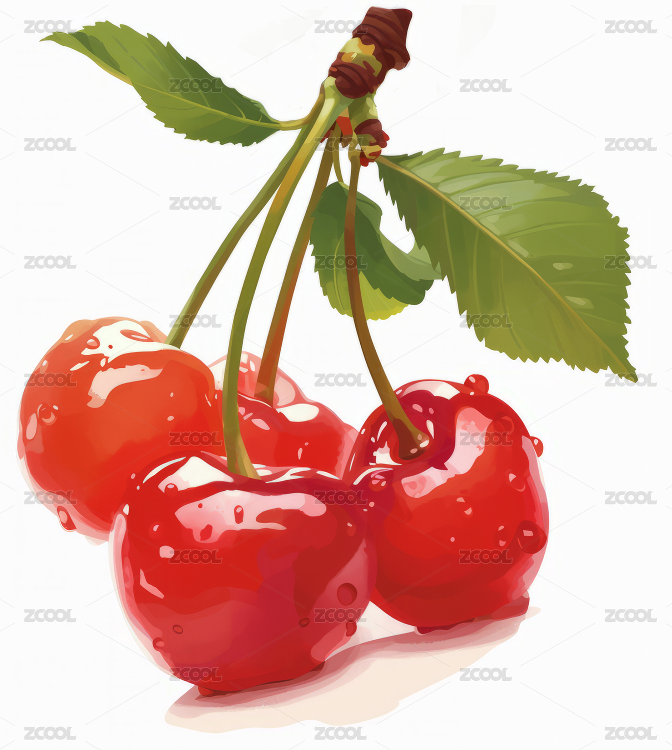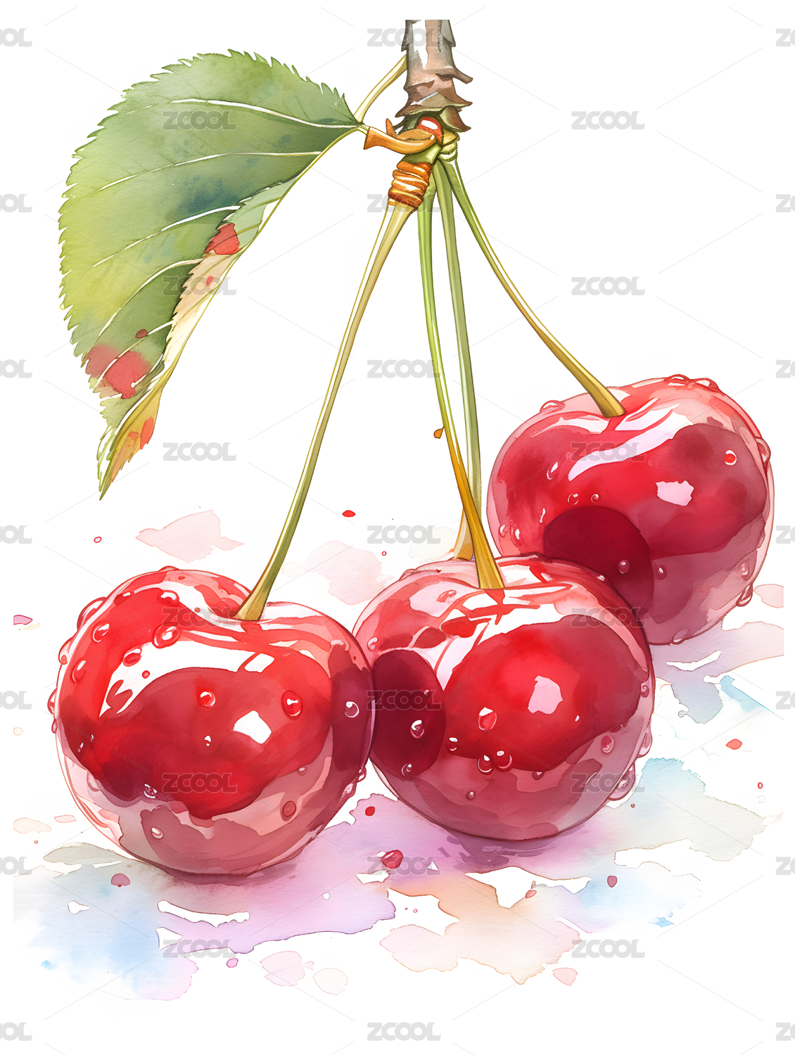 水彩风格的红樱桃绘画作品