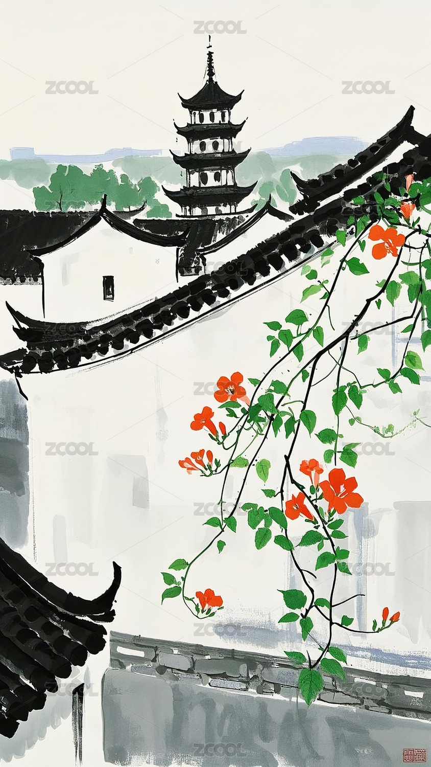 水墨画,艺术,景色,风景,自然,文化,中国风,传统,写意画,建筑