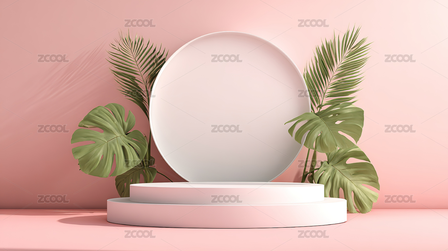 金色圆环展台与棕榈叶背景