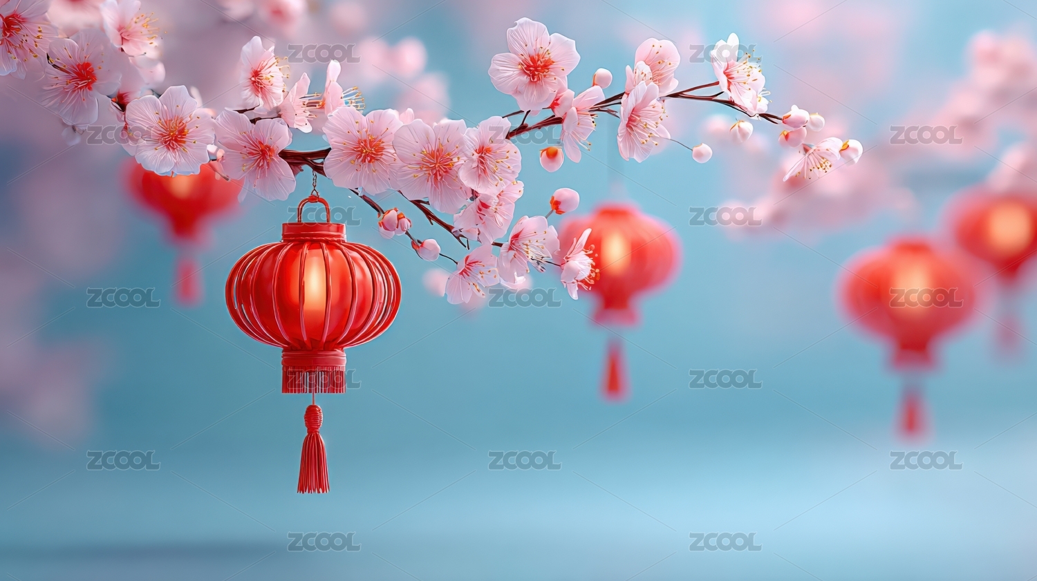 樱花,灯笼,粉色,树枝,花朵,春天,节日,装饰,柔和,光晕