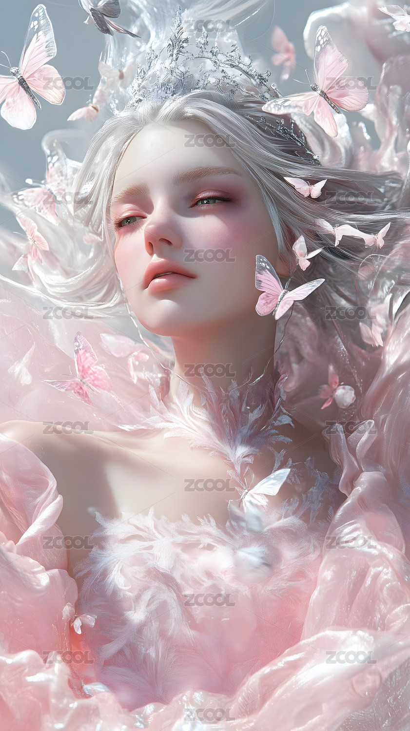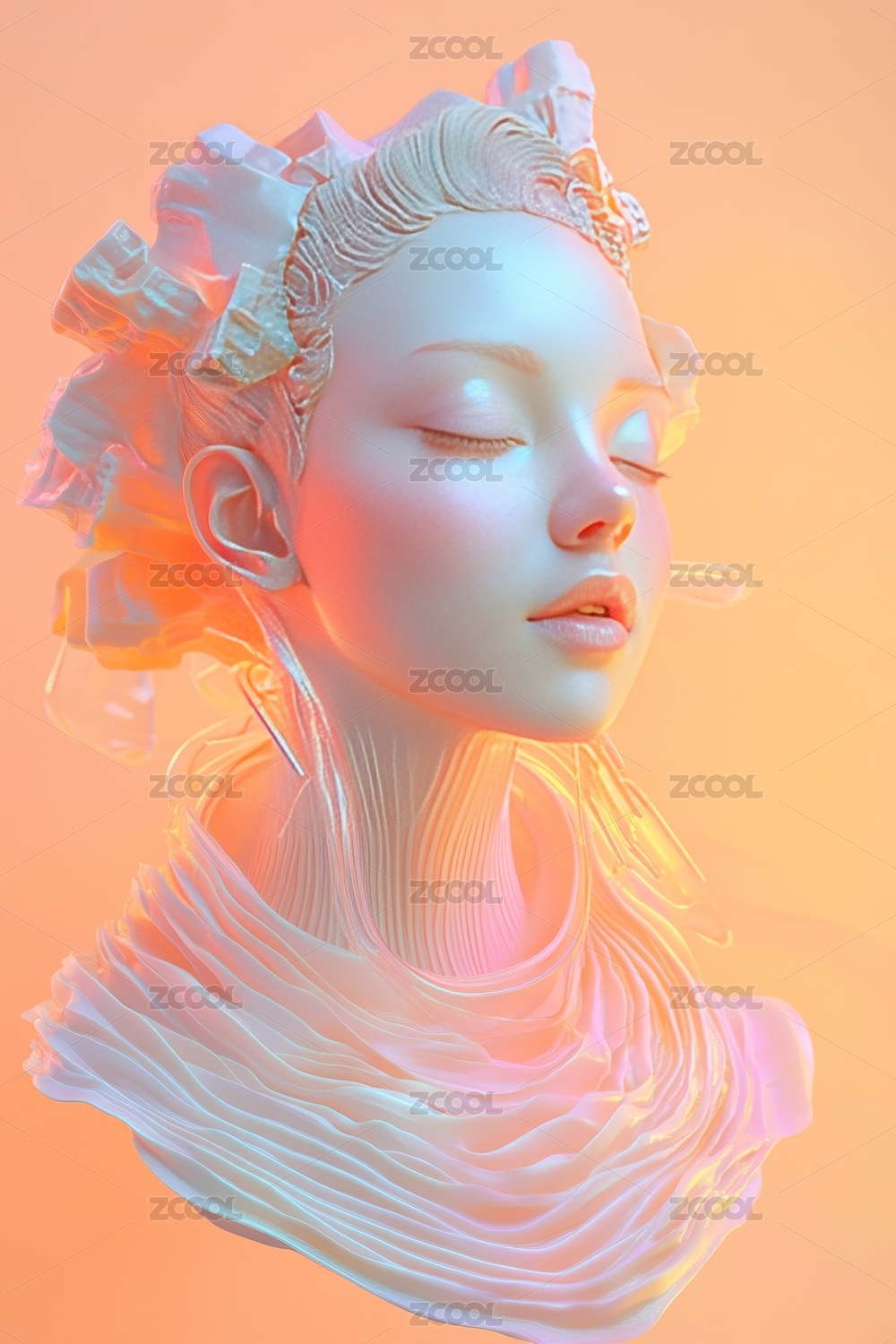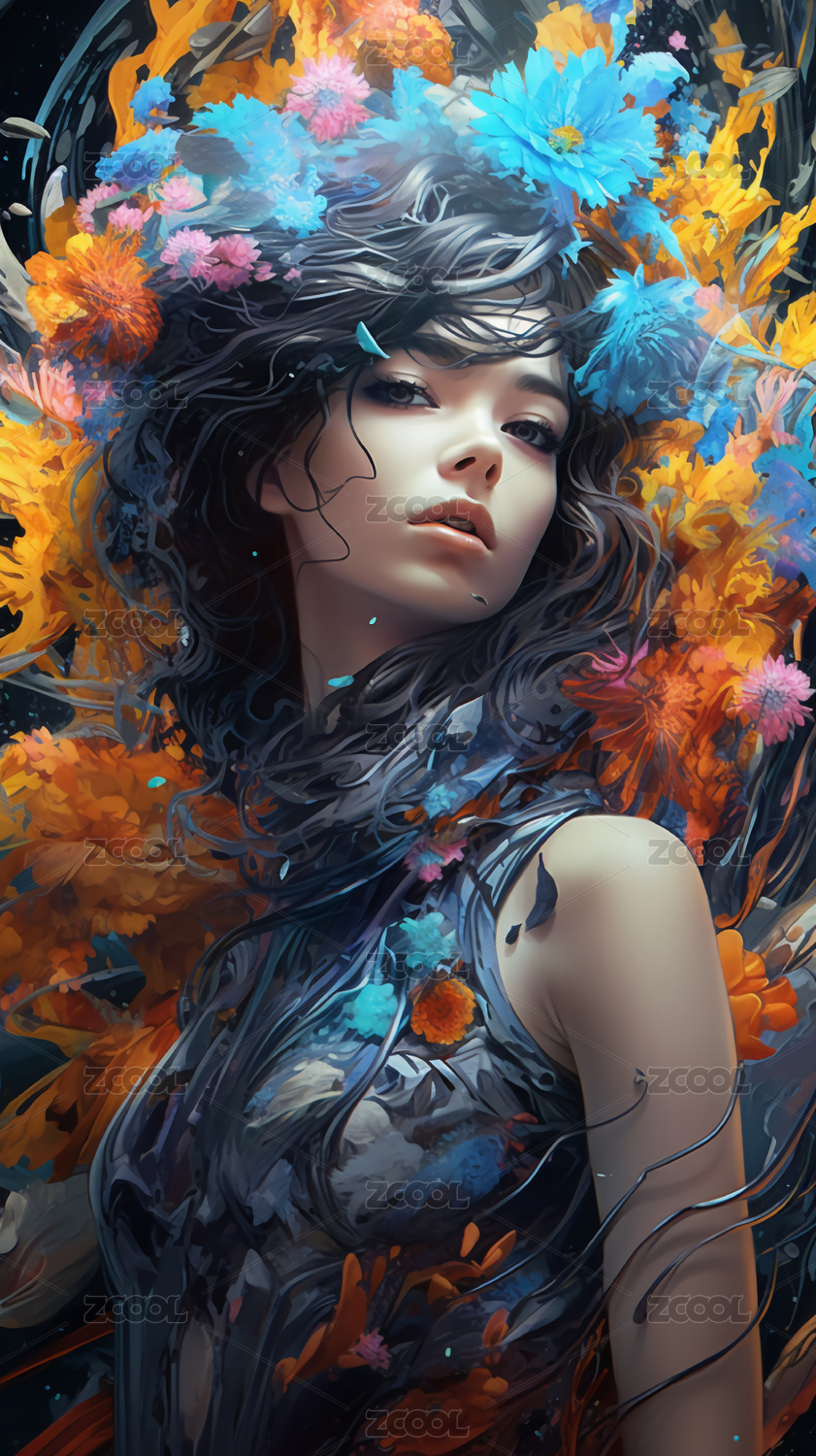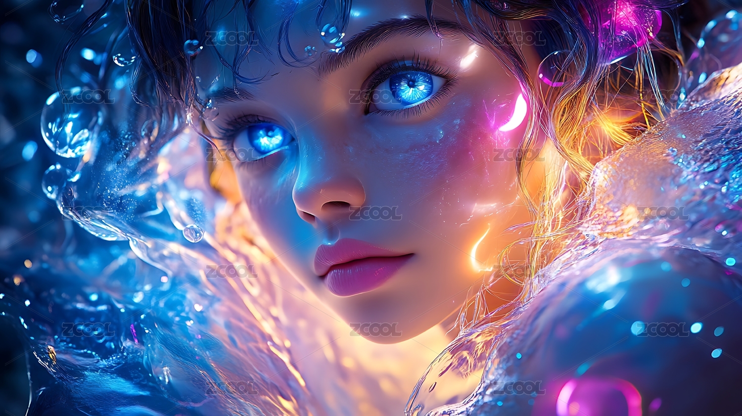 一个优雅的女生和色彩斑斓梦幻的夜晚