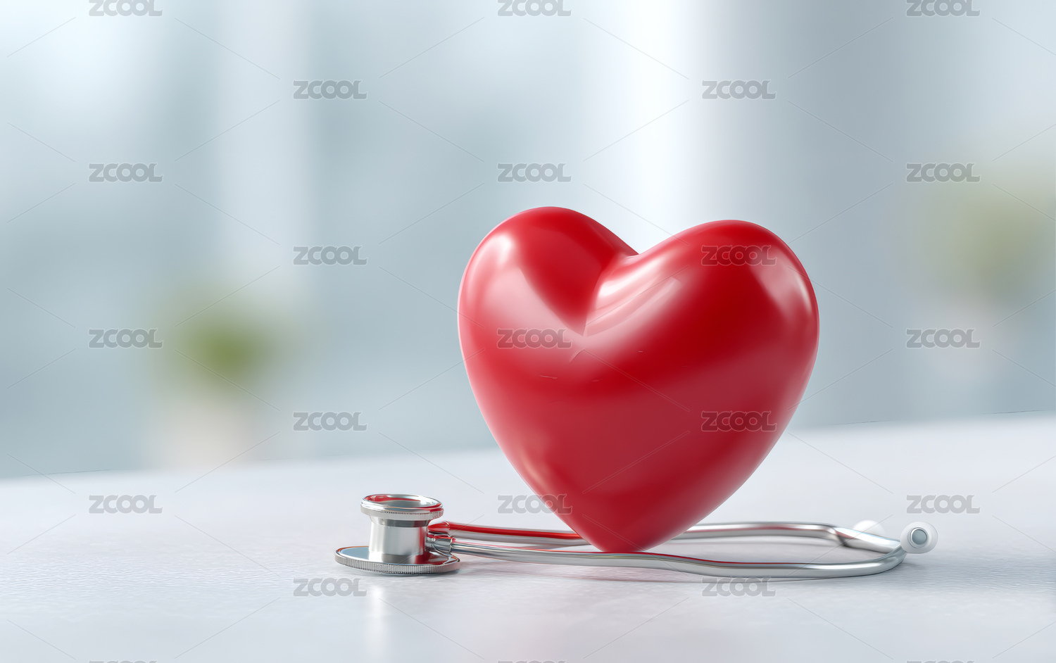 一颗红色爱心和听诊器