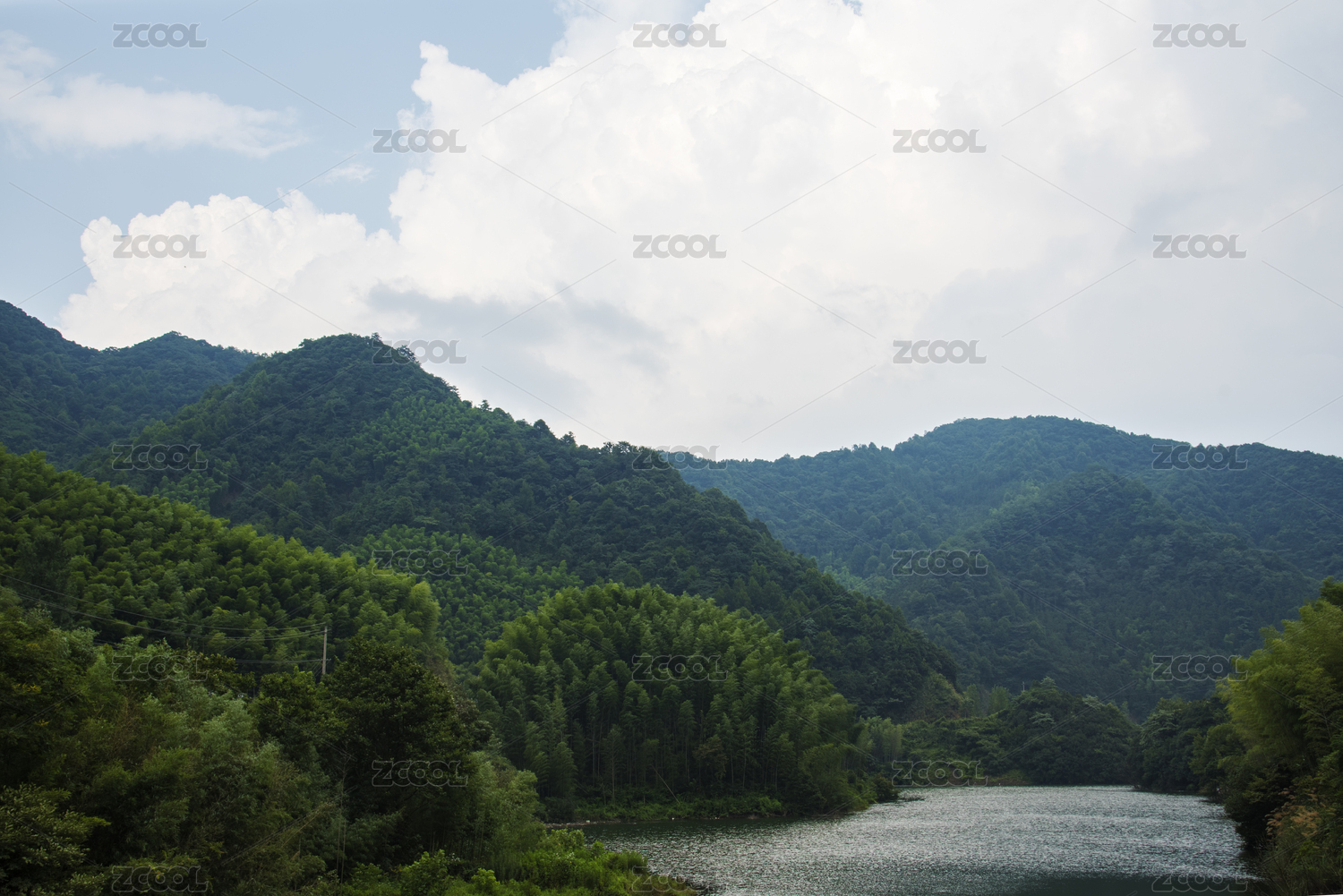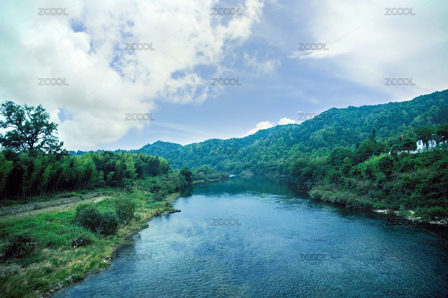中国江西景德镇蓝天白云下昌江源头沿岸山水风光