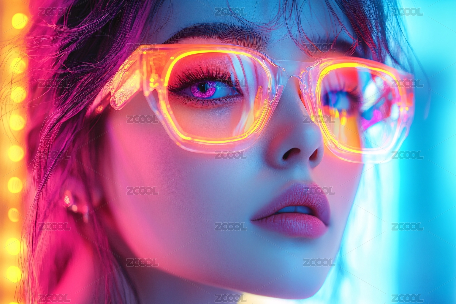 戴荧光眼镜的时尚女性
