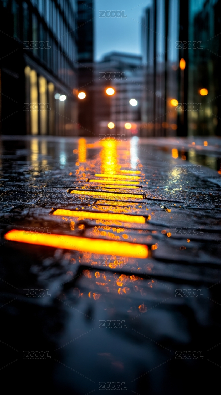 城市,建筑,夜景,街道,光影,蓝色,灯光,倒影,水面,雨夜