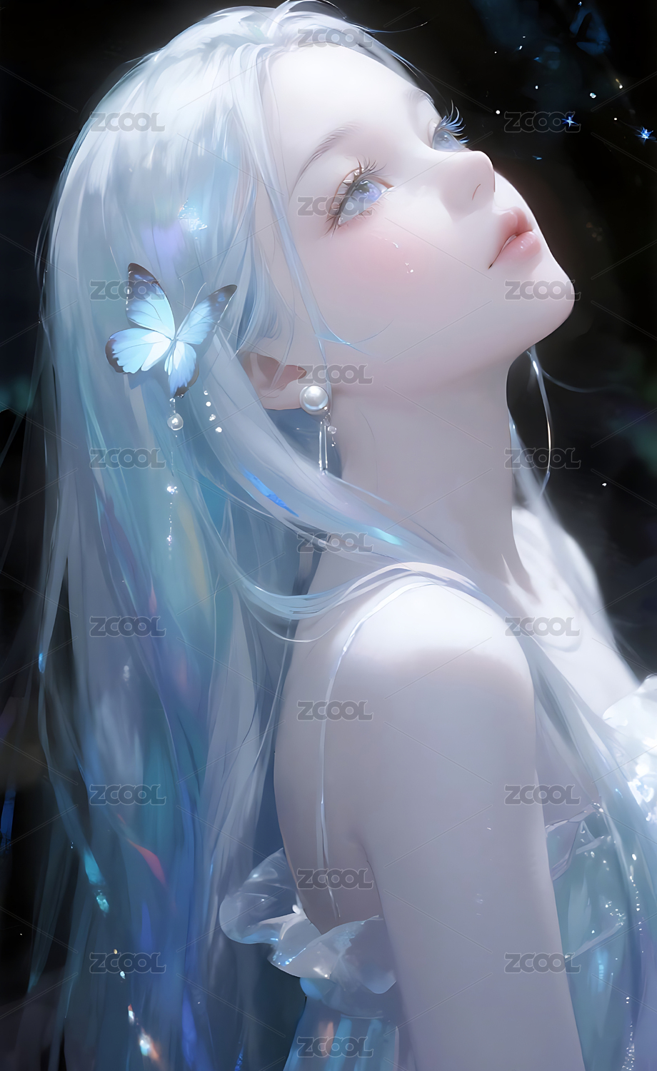 艺术,女孩,绘画,作品,线条,唯美,动漫,人物,少女,白发