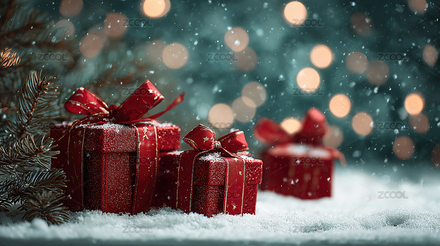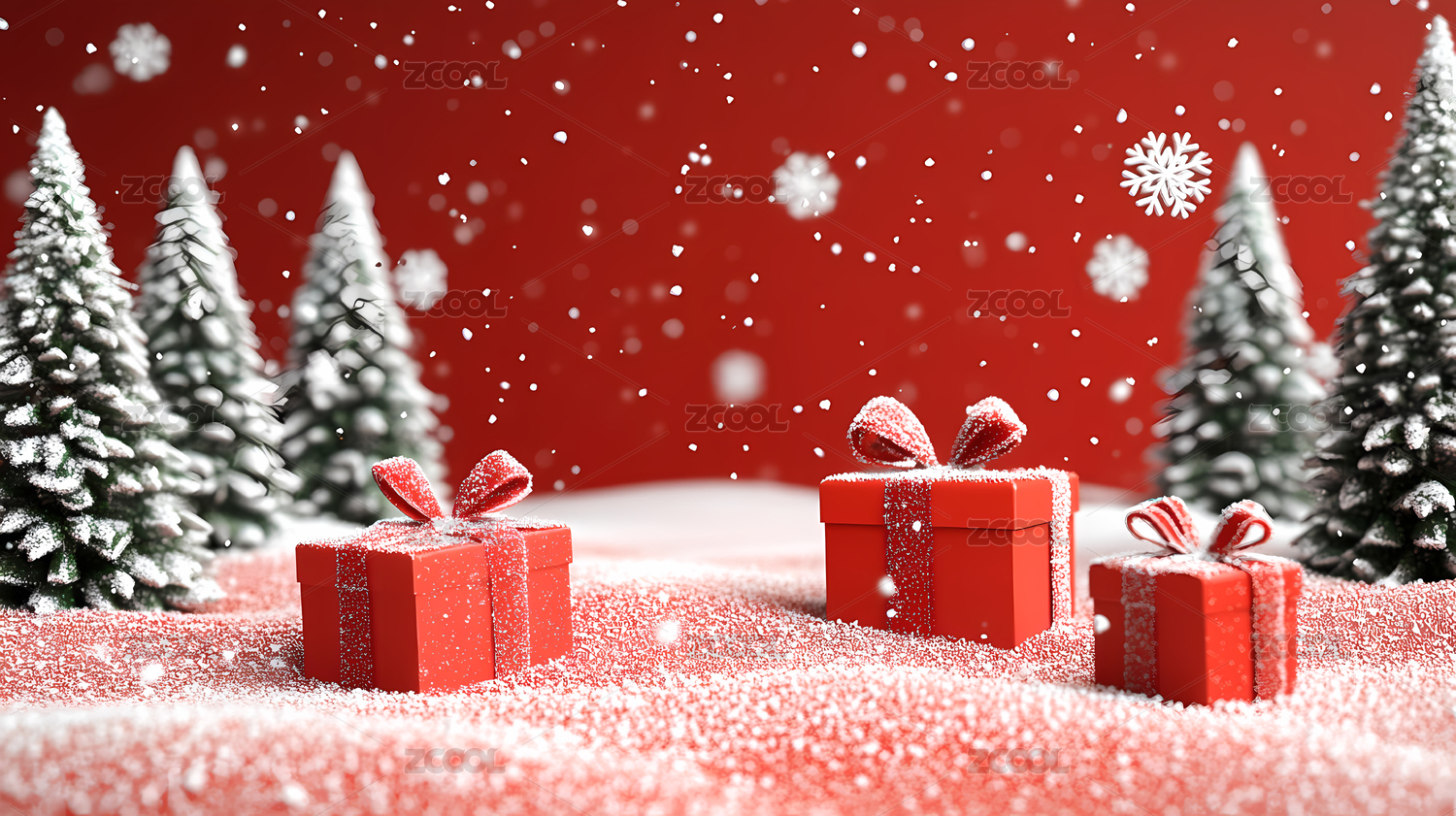 圣诞节红色礼物和雪花场景