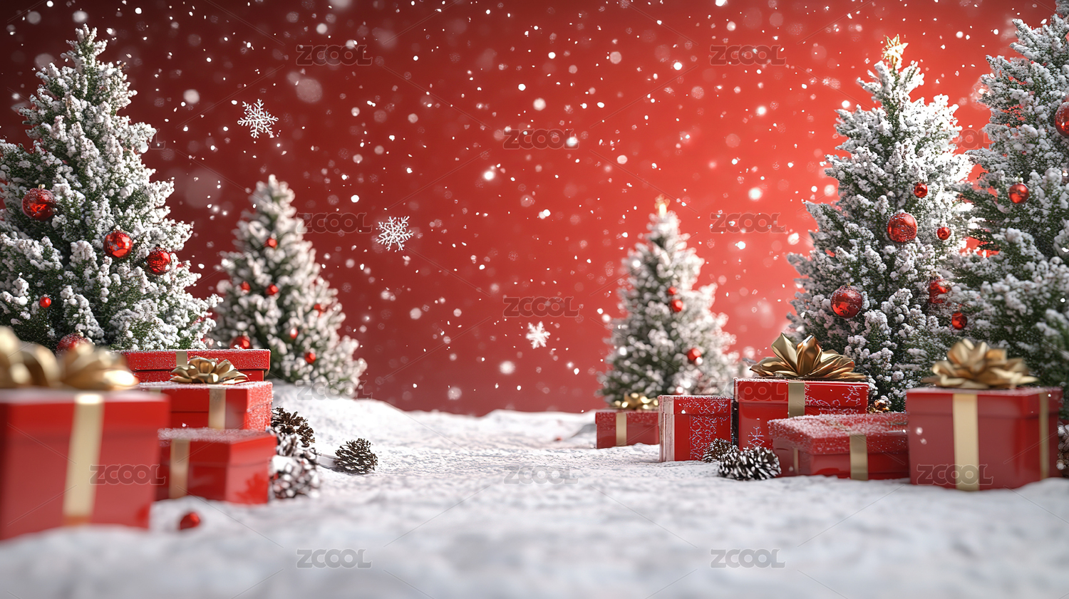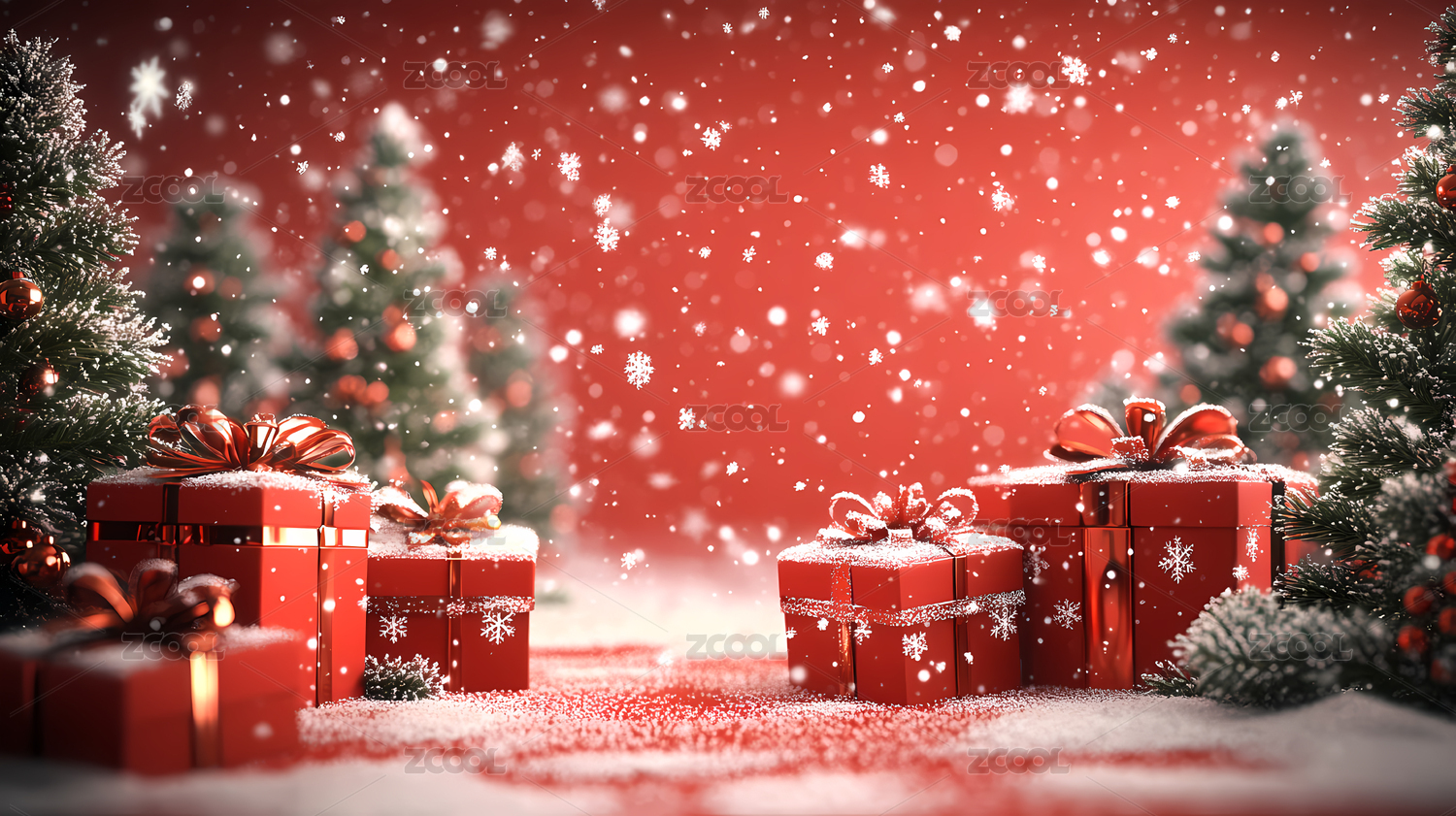 节日,红色,喜庆,背景,浪漫,庆典,圣诞节,礼物,雪景,圣诞树