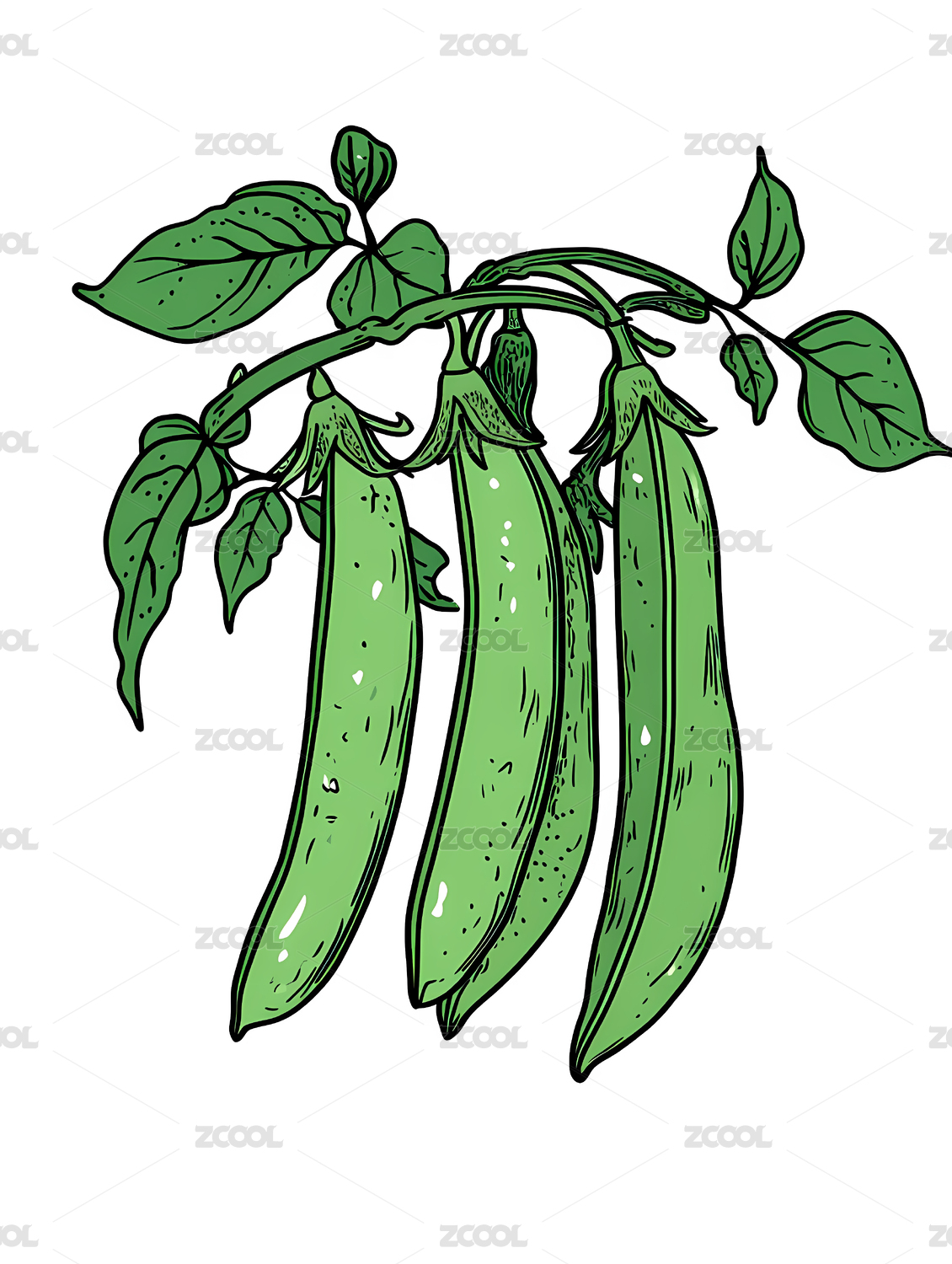 插画,蔬菜,植物,食材,营养,豌豆,豆荚,绿色,农作物,农业